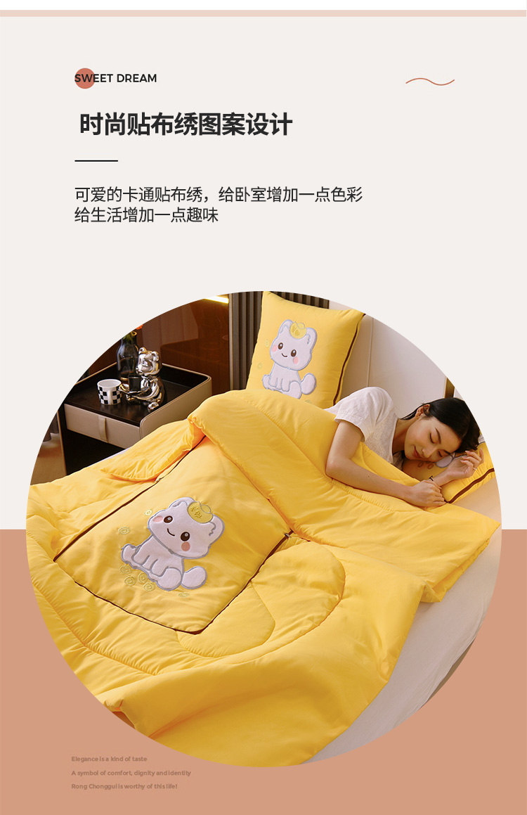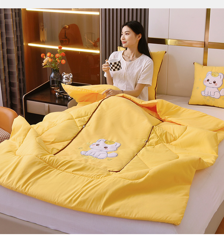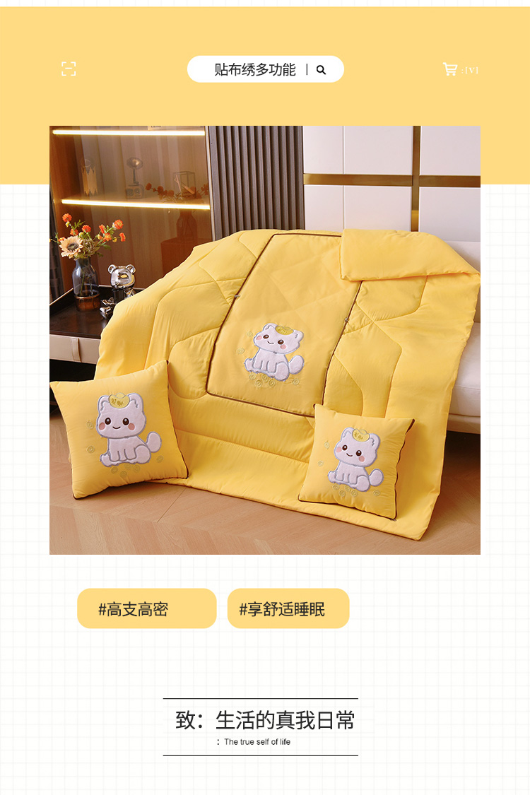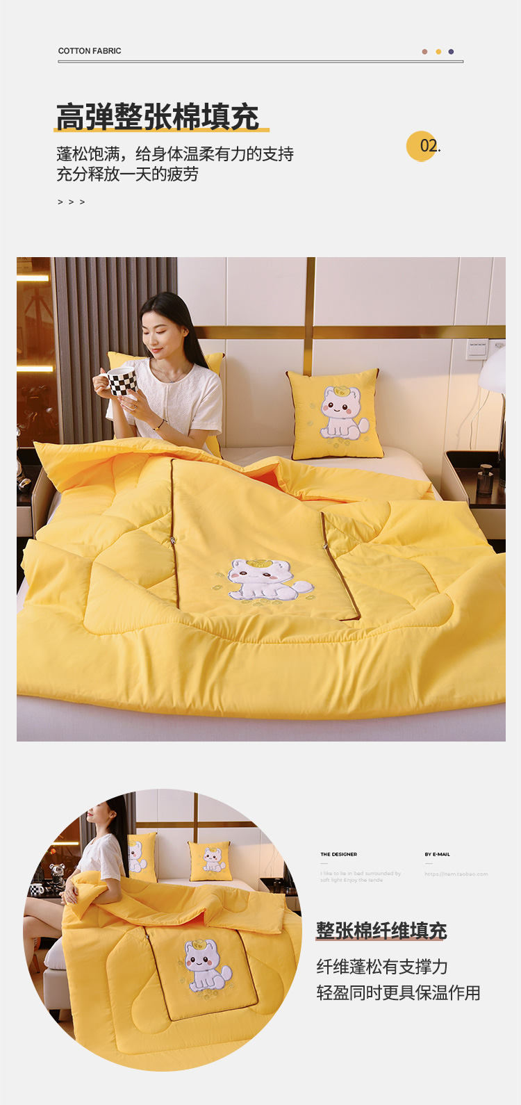阳光依佰 2023新款磨毛贴布绣四季款抱枕被-发财猫 发财猫-明黄