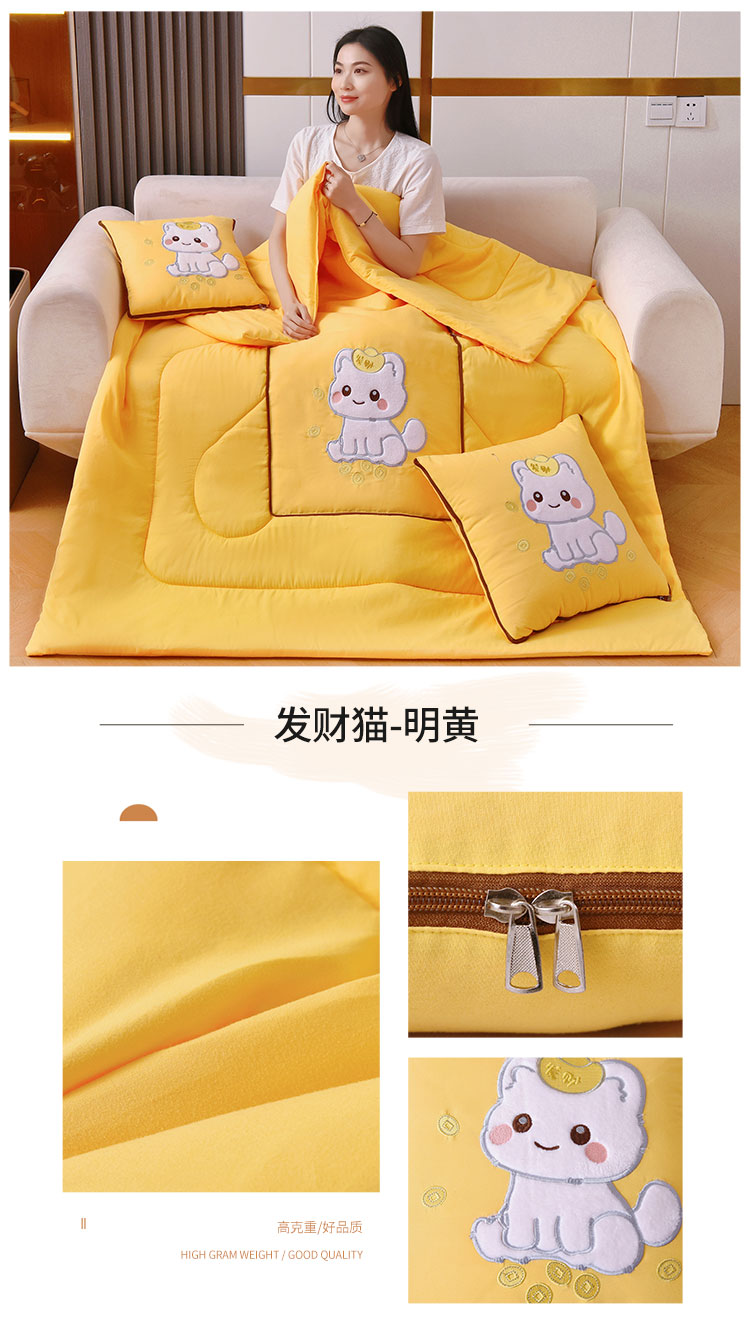 商品名称:阳光依佰 2023新款磨毛贴布绣四季款抱枕被-发财猫 发财猫-明黄