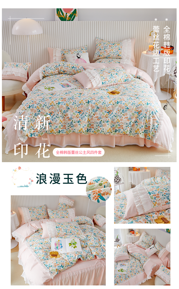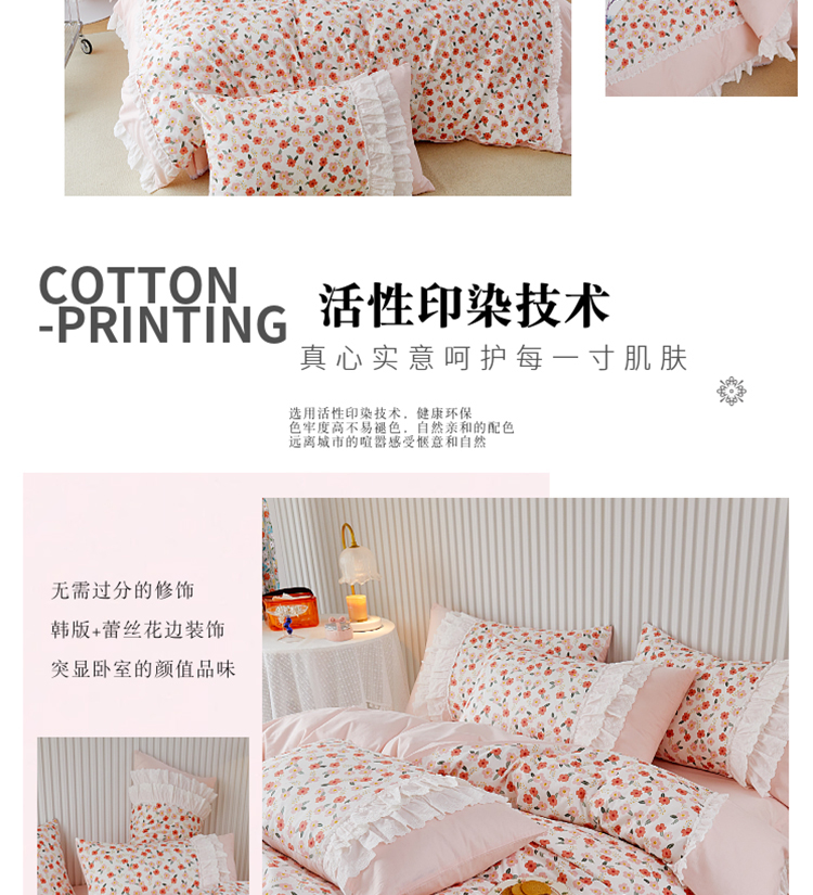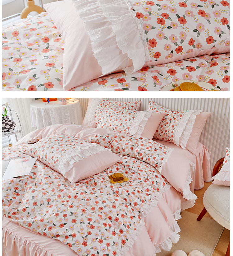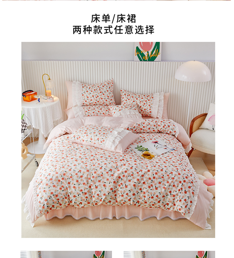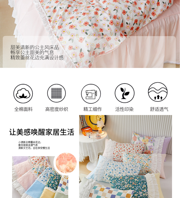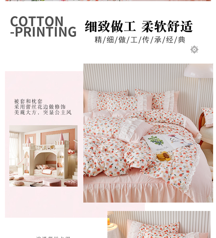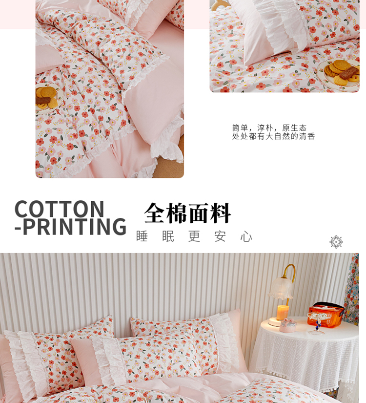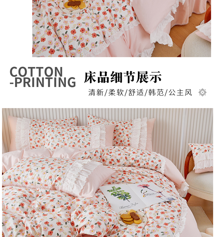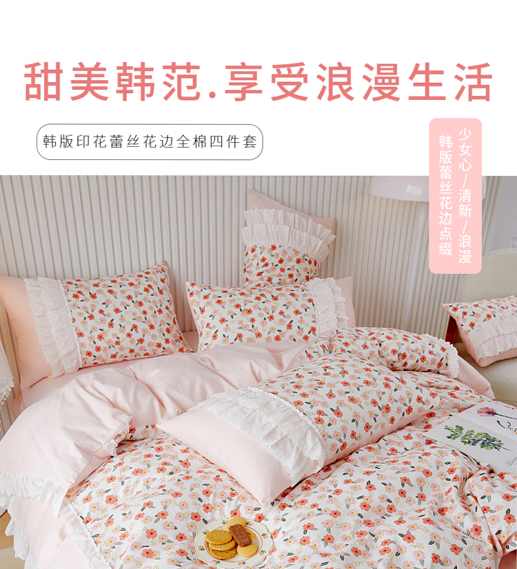 (总)亲亲公主 2025新款全棉法式宽花边四件套-浅浅爱,浅浅爱