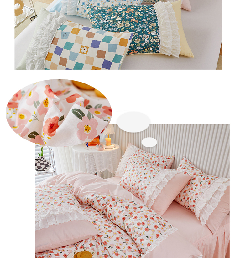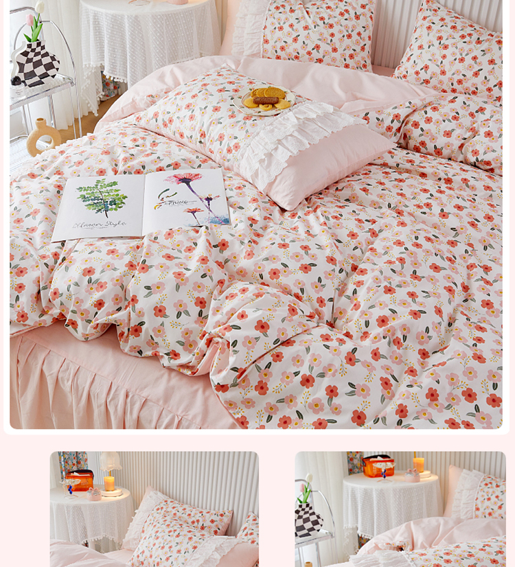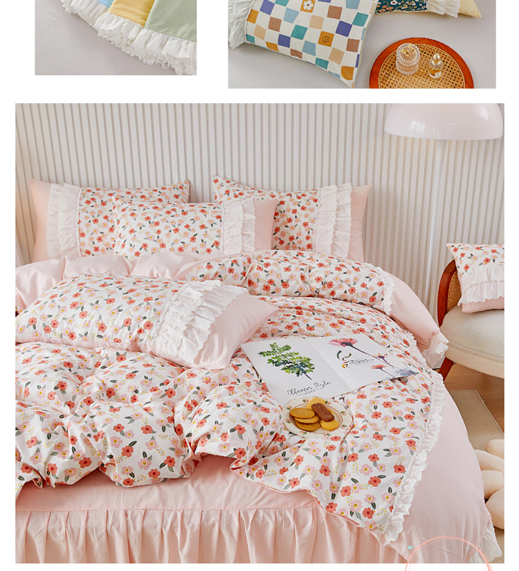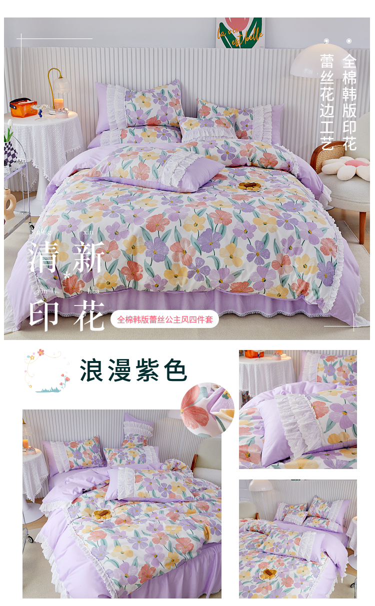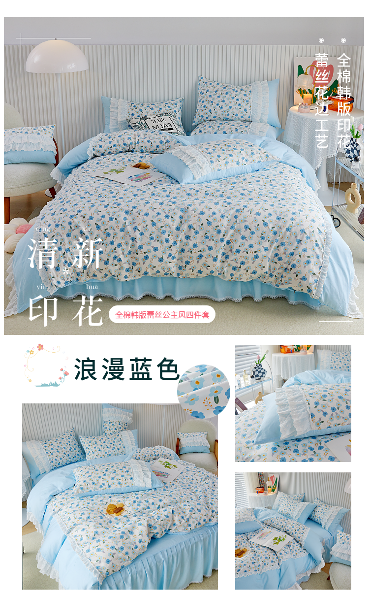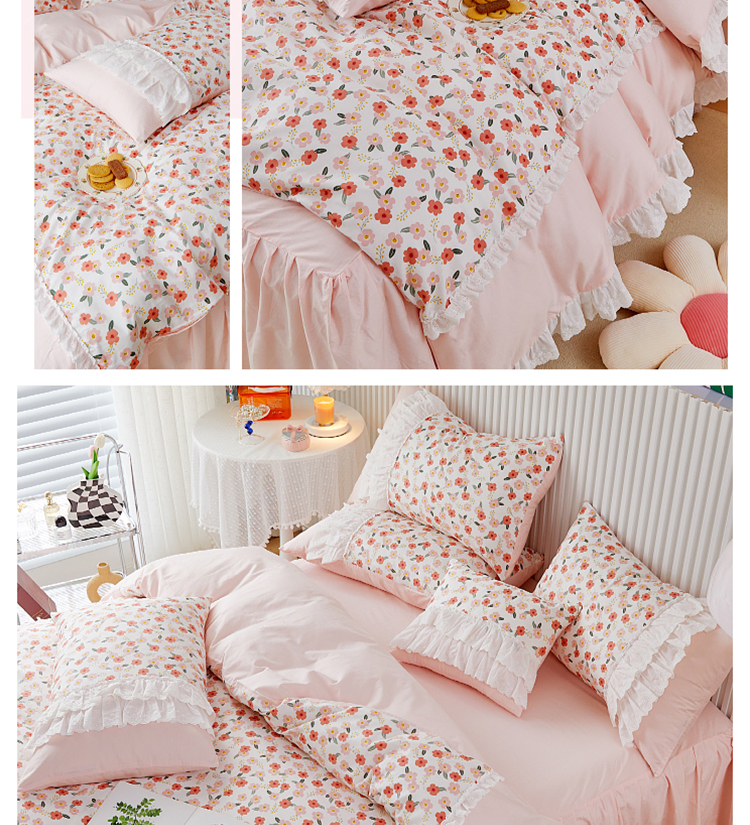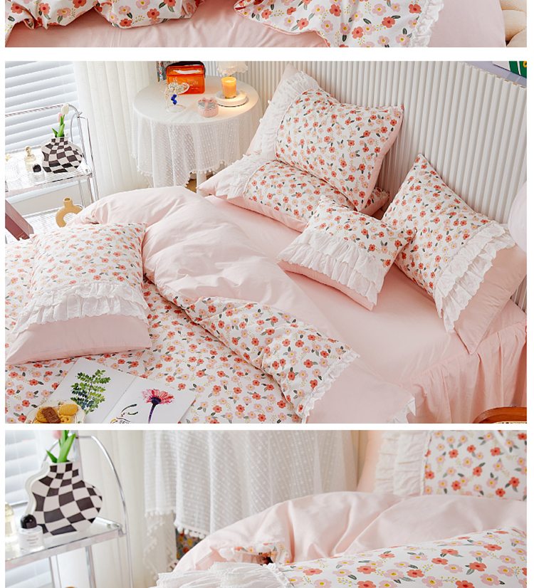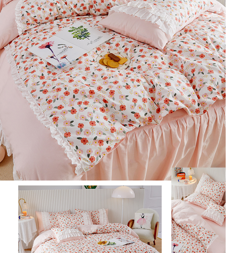 (总)亲亲公主 2025新款全棉法式宽花边四件套-浅浅爱,浅浅爱