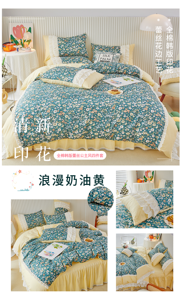 (总)亲亲公主 2025全棉蕾丝花边床裙公主风四件套,甜心花园-玉色,甜心花园-绿色,甜心花园-黄色,甜心花园-浅紫色,甜心花园-蓝色,甜心花园-粉色