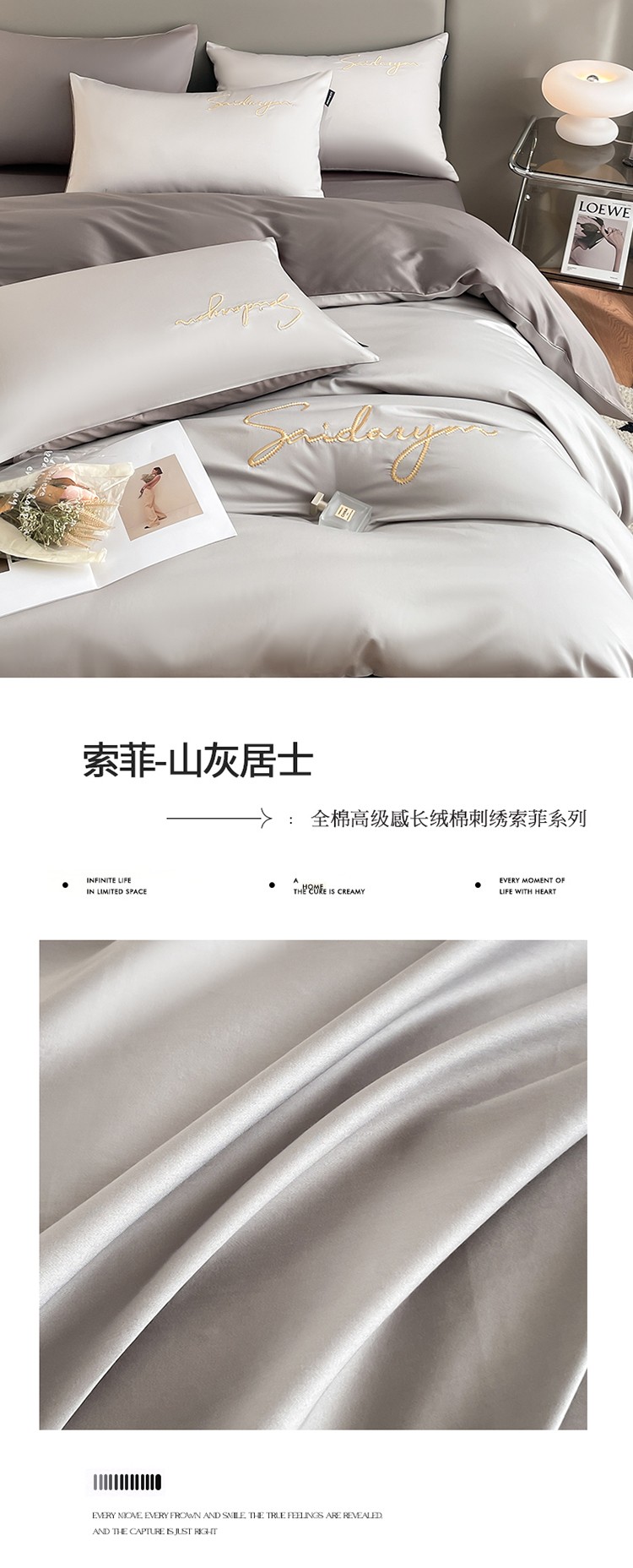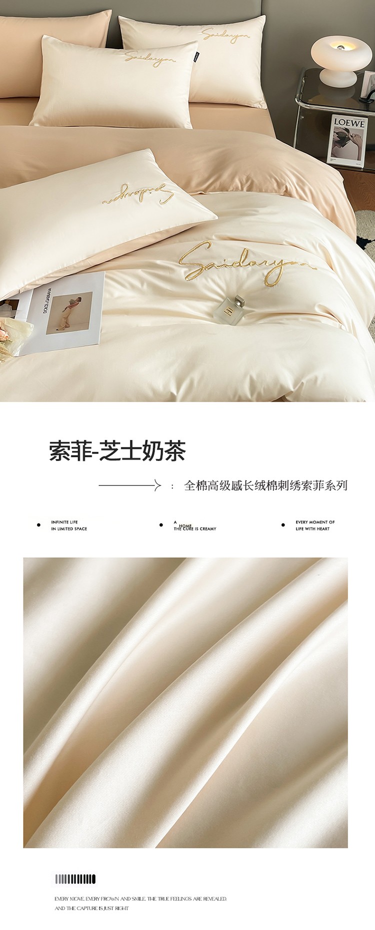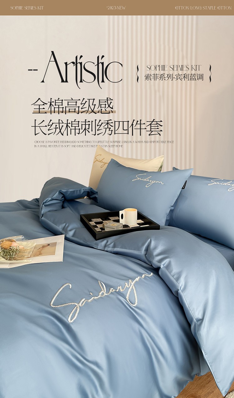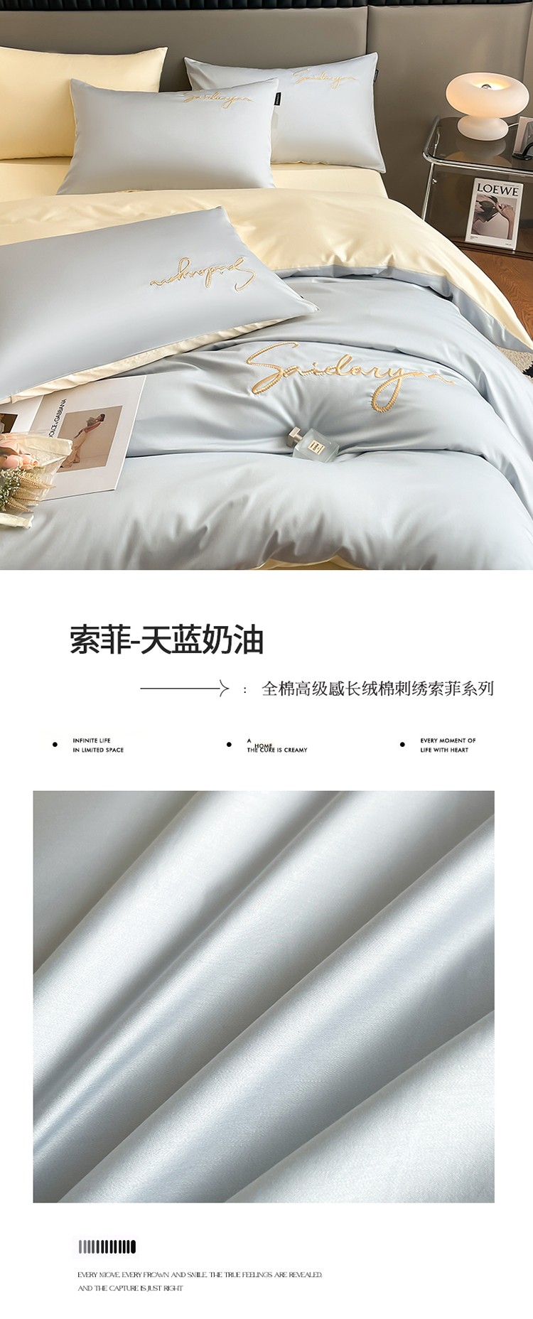 (总)蓝米卡夫 2024全棉高级感长绒棉刺绣索菲系列-四件套