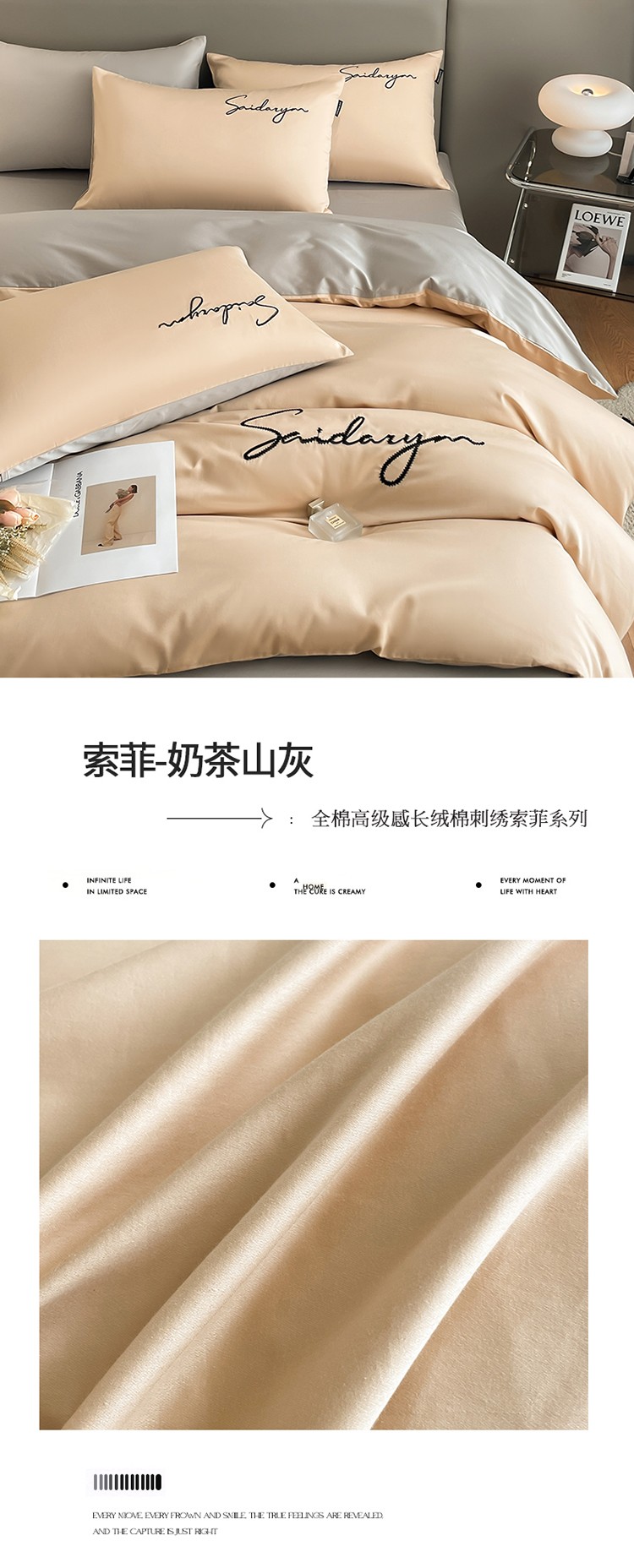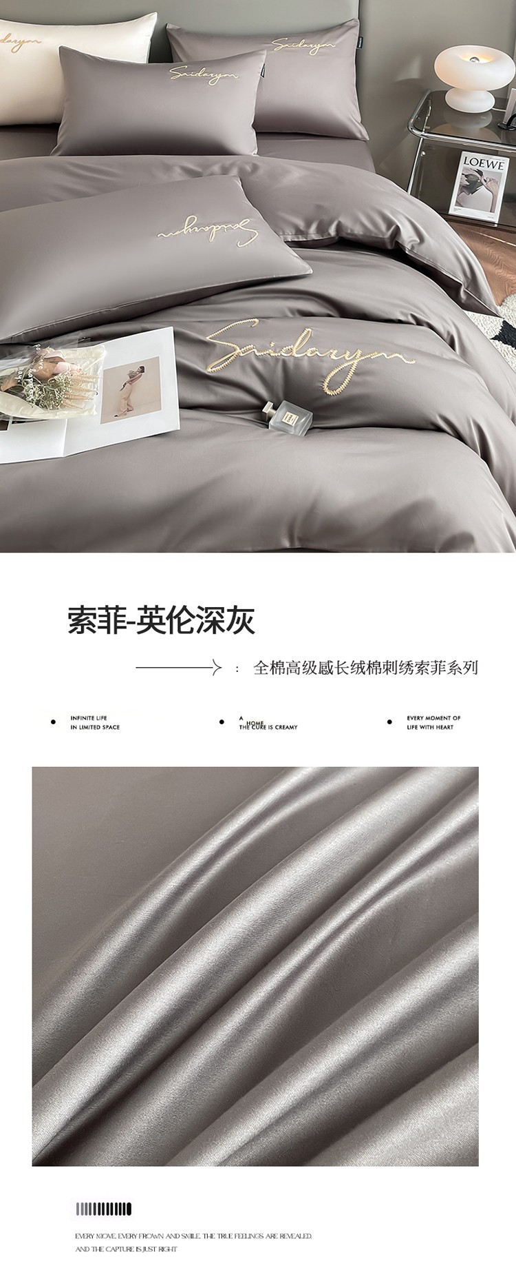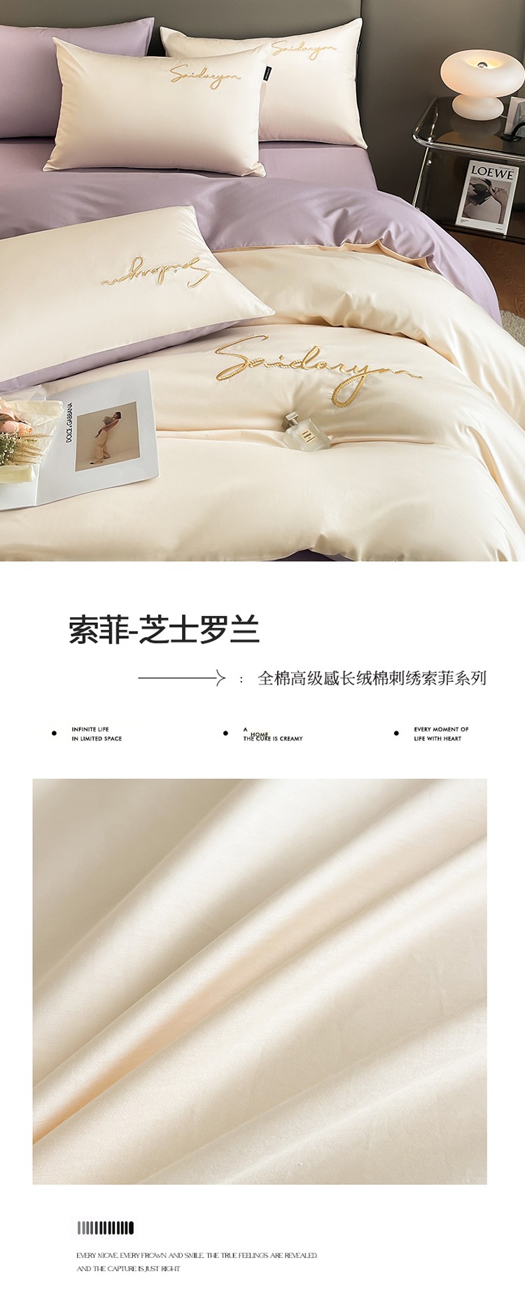 (总)蓝米卡夫 2024全棉高级感长绒棉刺绣索菲系列-四件套