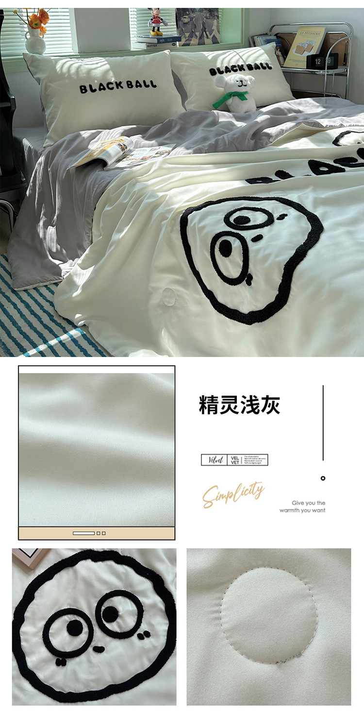 当前位置: 91家纺网 > 商品网购 > 床品套件 > 四件套 > 水洗棉四件套 > 眠帛 2024新款A类水洗棉毛巾绣夏被四件套—精灵系列 精灵浅灰