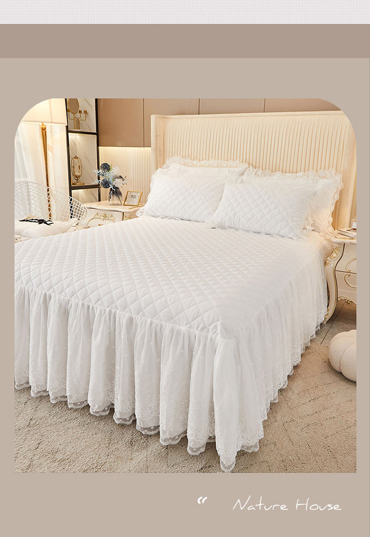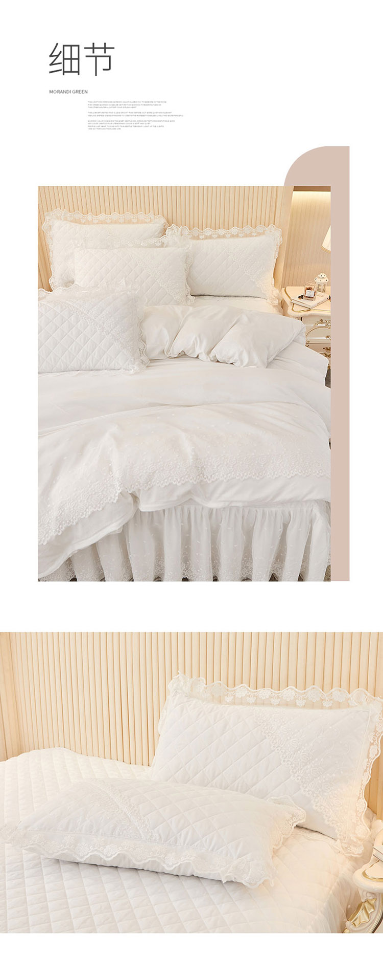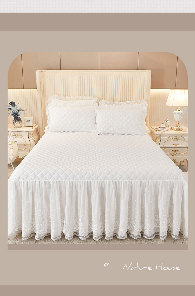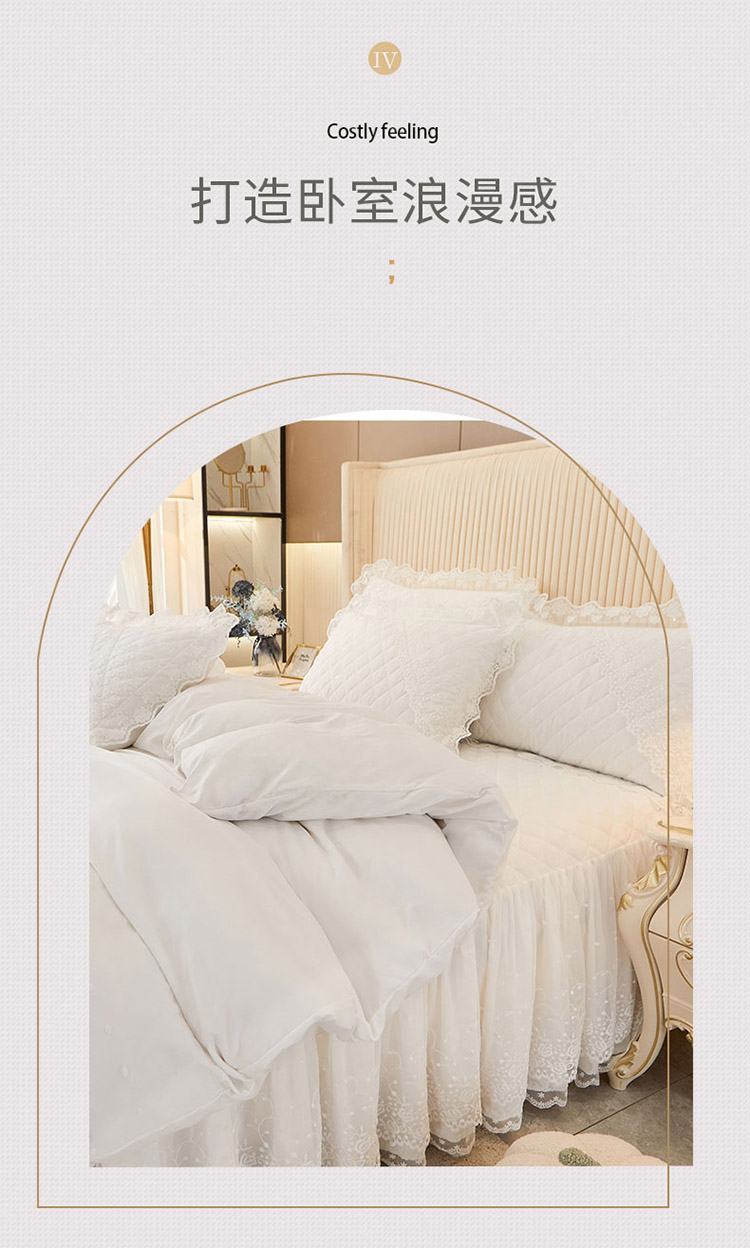 当前位置: 91家纺网 > 商品网购 > 床品套件 > 四件套 > 磨绒四件套 > 恋尚 2023新款纯色雪花绒夹棉蕾丝床裙四件套(四季款) 玫瑰公主-白