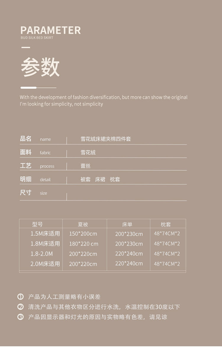1.8m加大床裙款四件套(被套200*230cm床裙180*220cm枕套48*74cm*2) | ¥185.00 |
