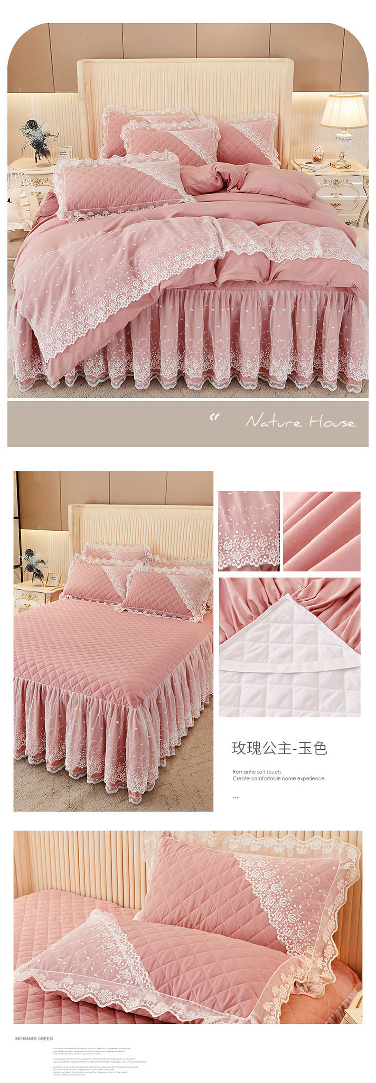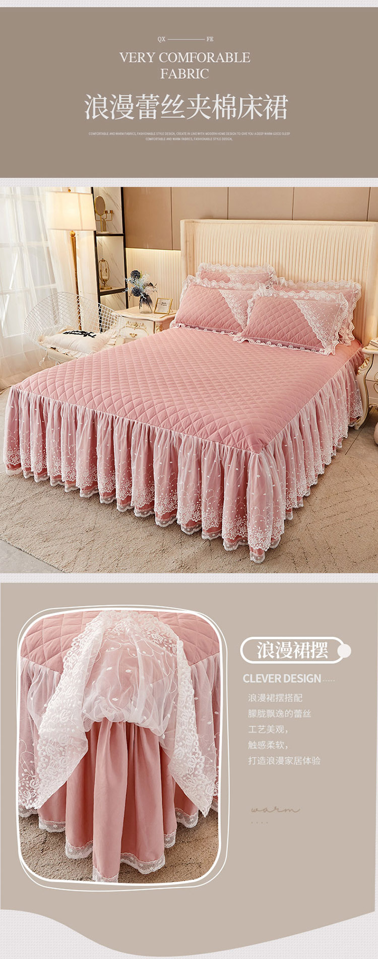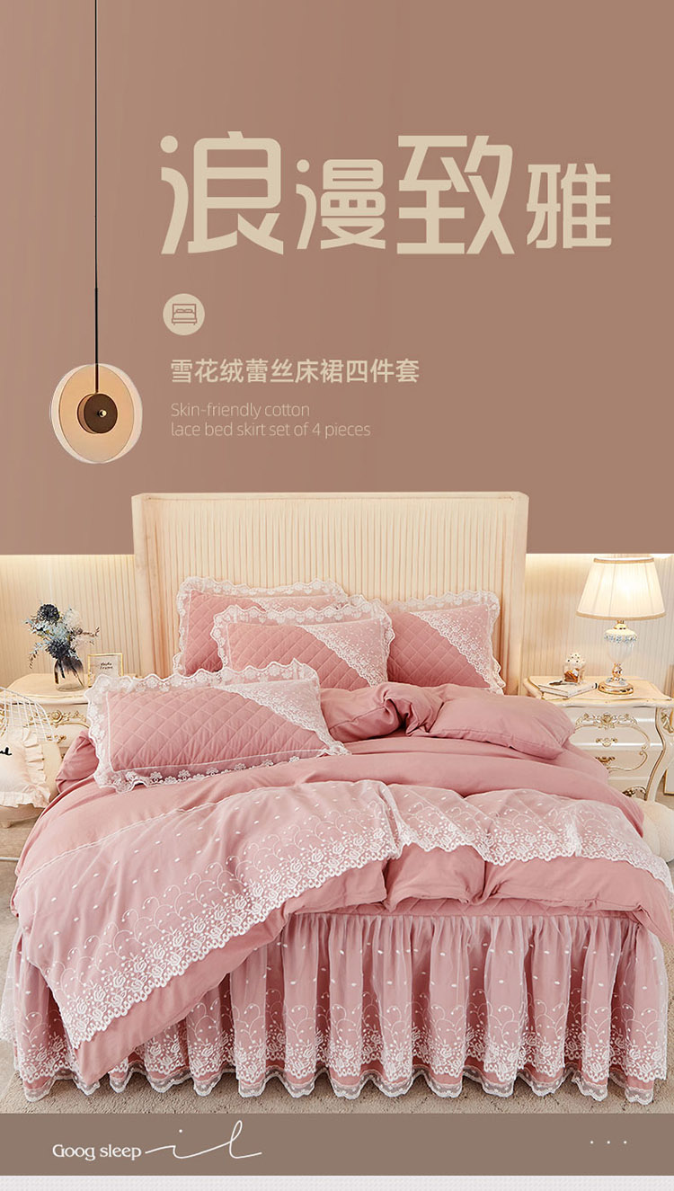 当前位置: 91家纺网 > 商品网购 > 床品套件 > 四件套 > 磨绒四件套 > 恋尚 2023新款纯色雪花绒夹棉蕾丝床裙四件套(四季款) 玫瑰公主-玉色