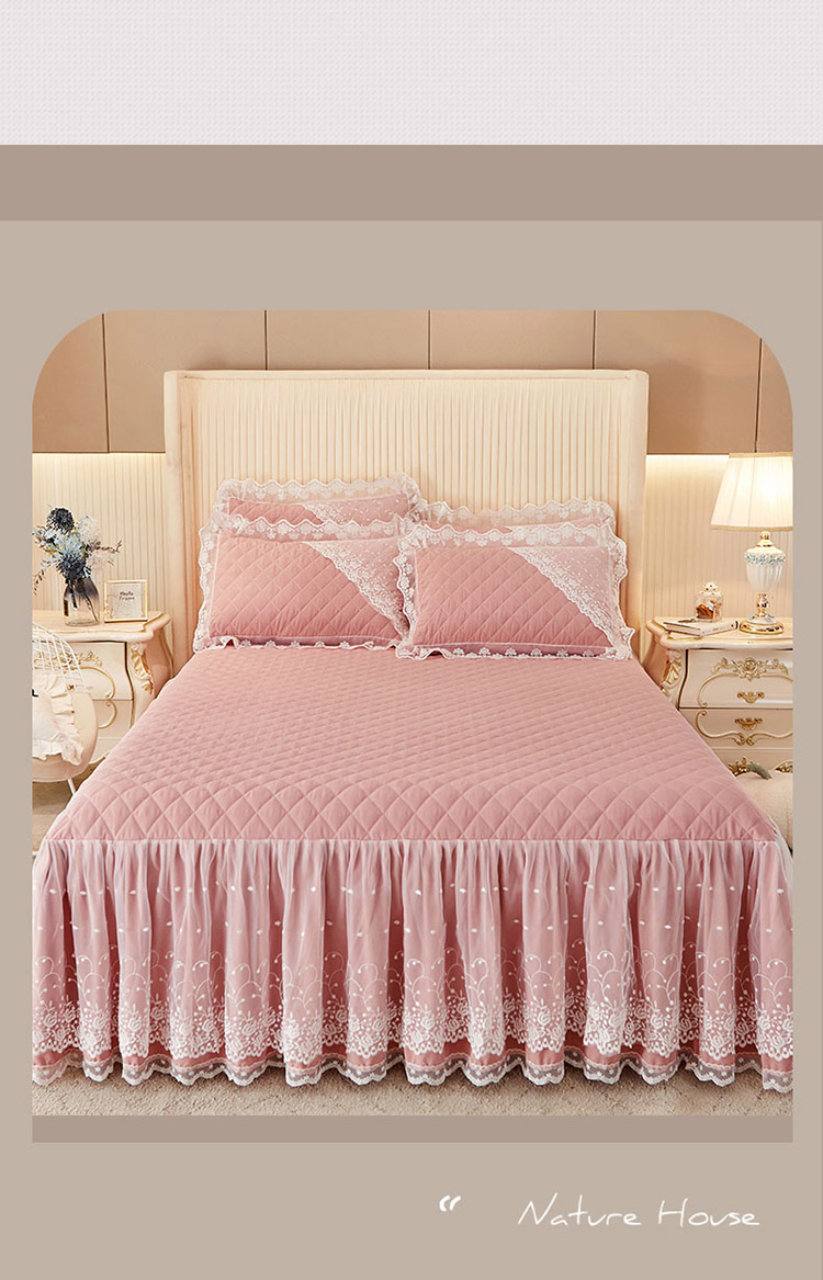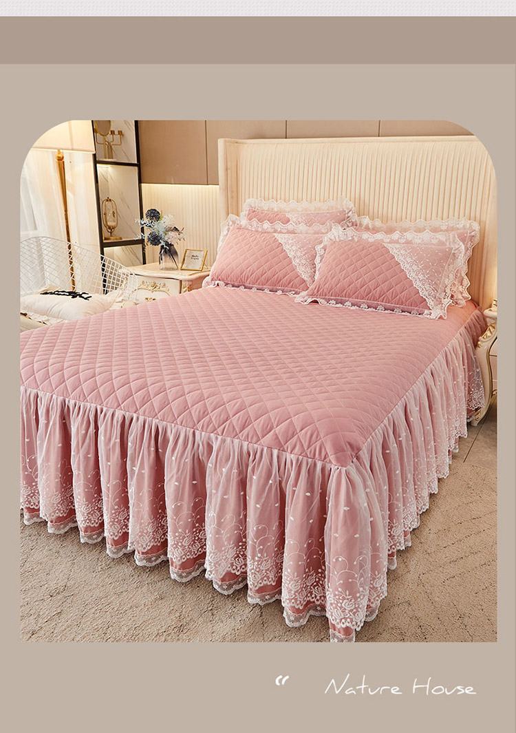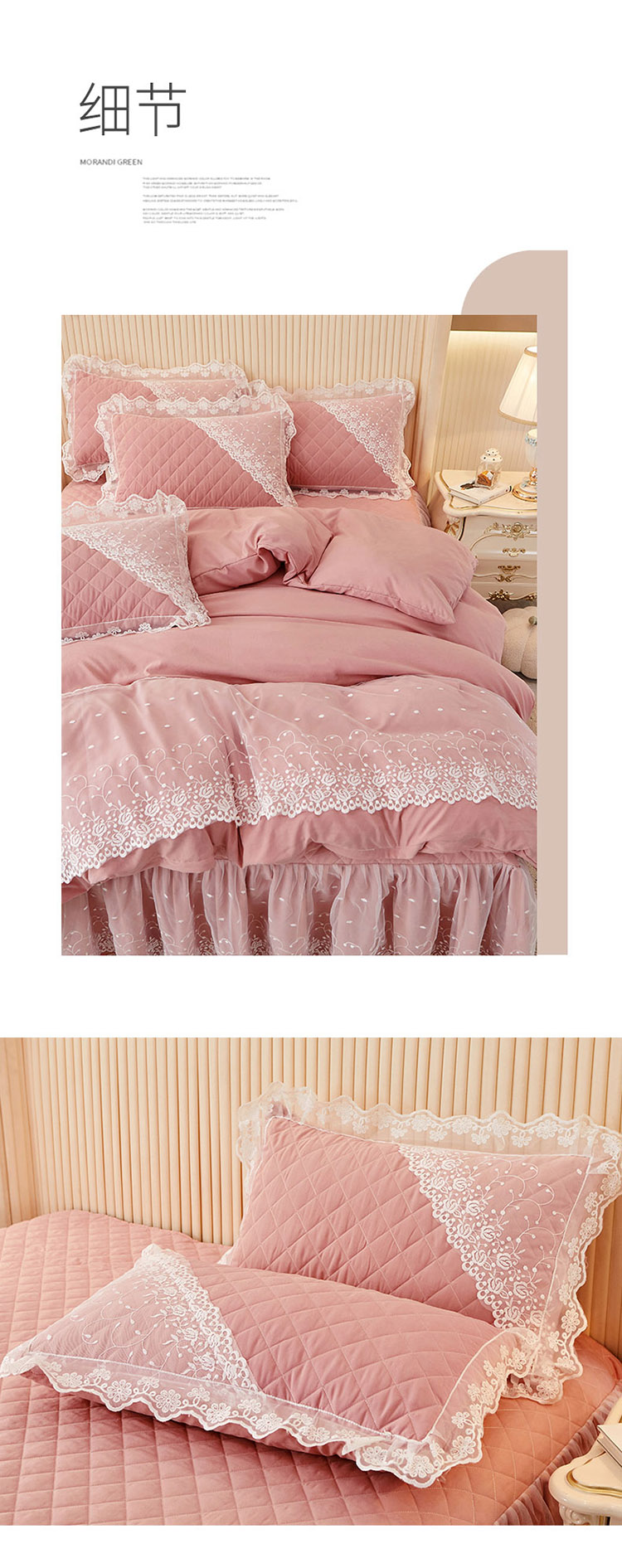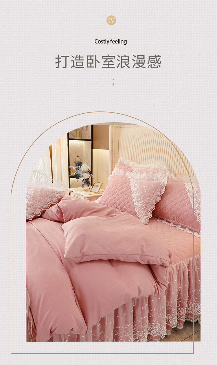 当前位置: 91家纺网 > 商品网购 > 床品套件 > 四件套 > 磨绒四件套 > 恋尚 2023新款纯色雪花绒夹棉蕾丝床裙四件套(四季款) 玫瑰公主-玉色