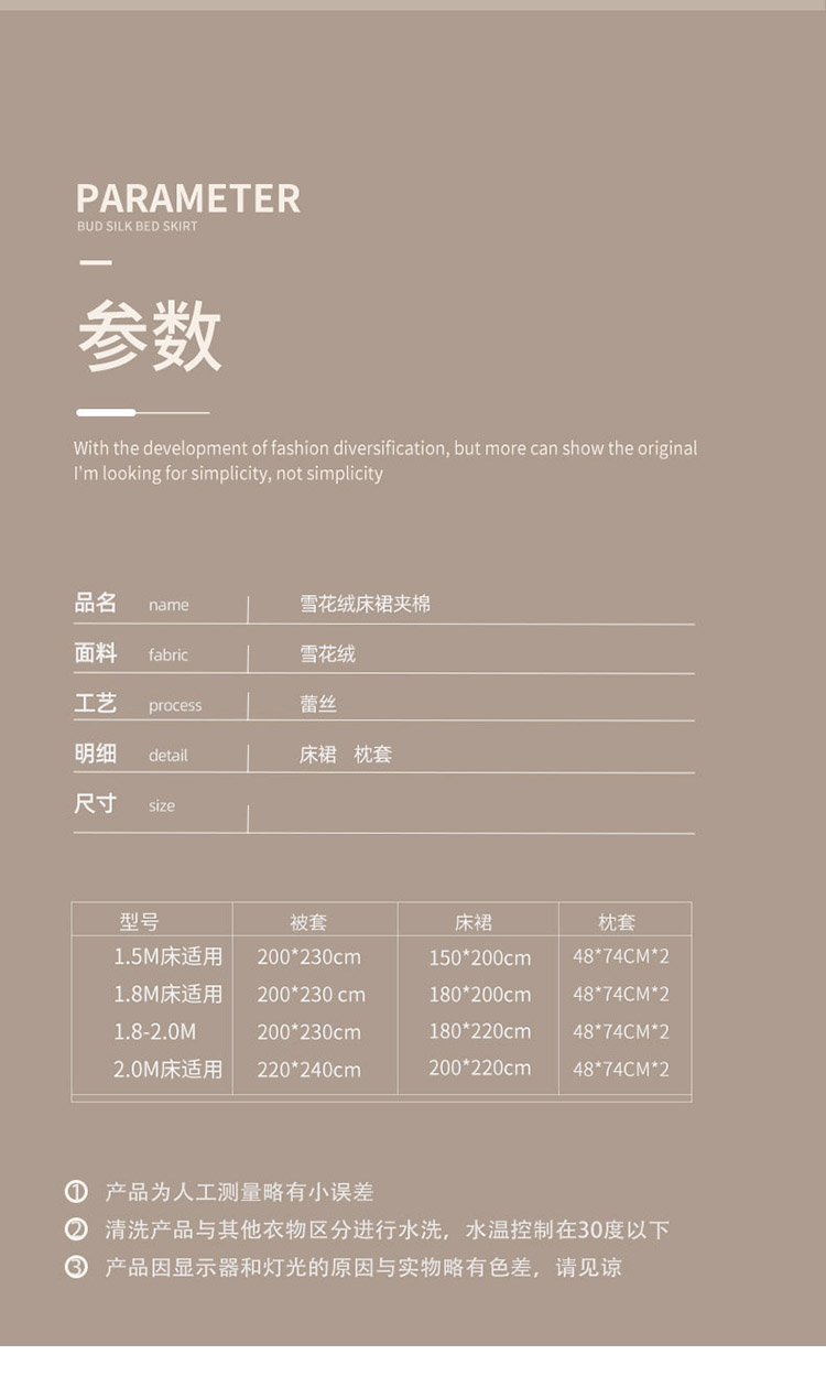 2.0m床裙款四件套(被套220*240cm床裙200*220cm枕套48*74cm*2) | ¥195.00 |