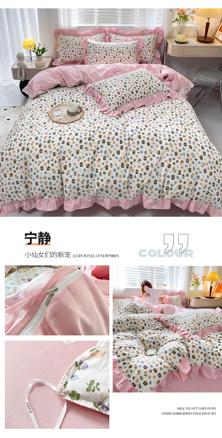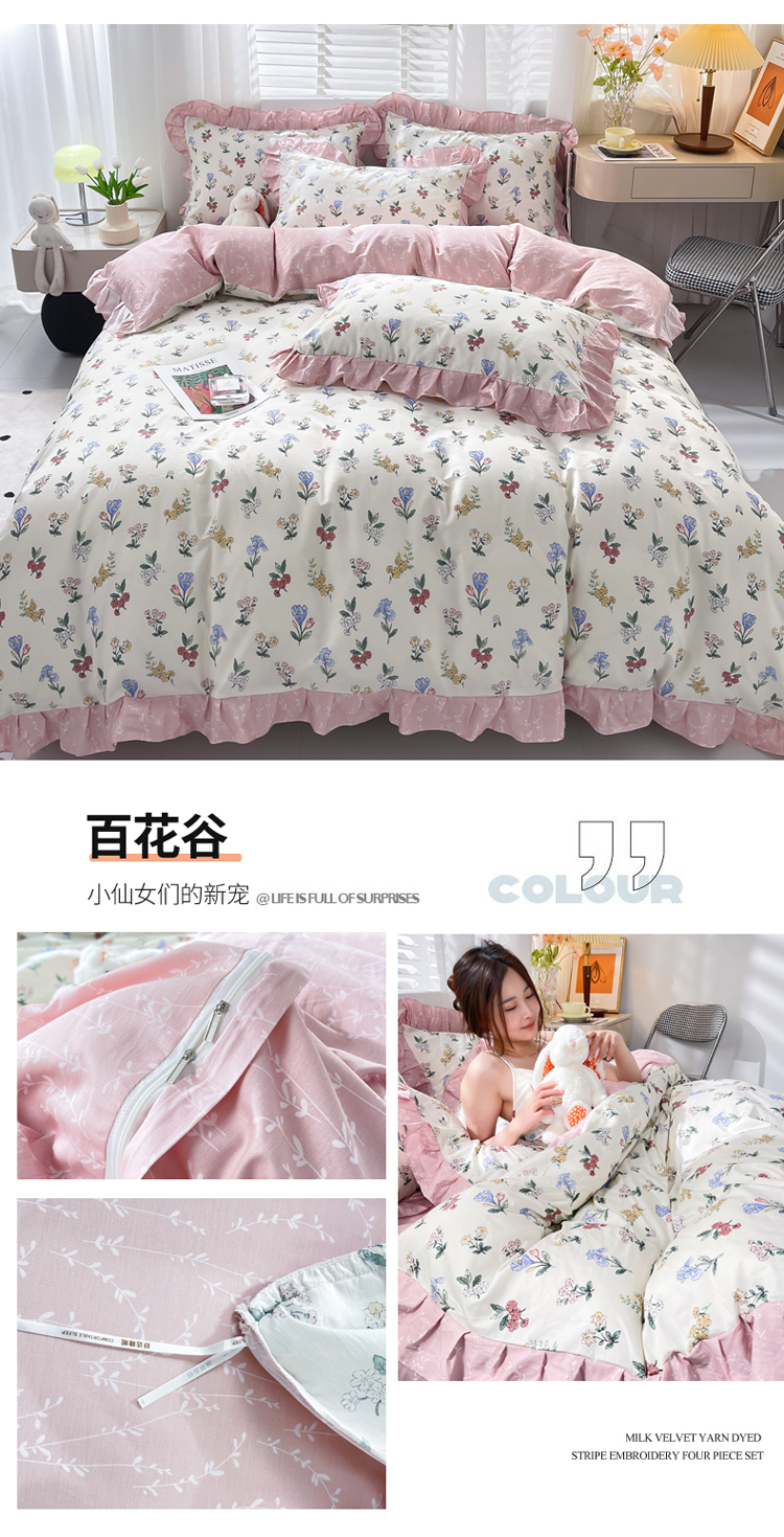 (总)简爱 2025新款13372韩版纯棉花边四件套,爱莲娜,百花谷,点点心语,花颂,欢乐谷,啾啾兔,桔阳花,恋爱季,美宣,宁静,皮皮狗,提花兔,又见花开,雨巷