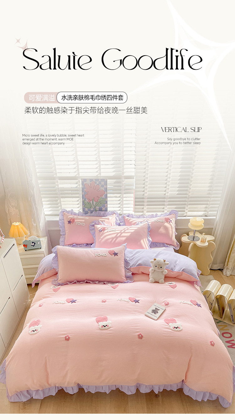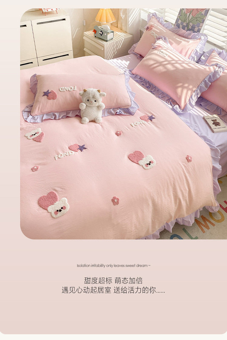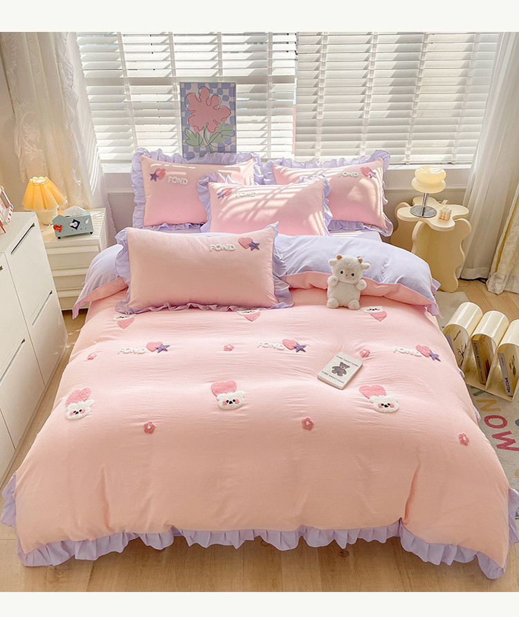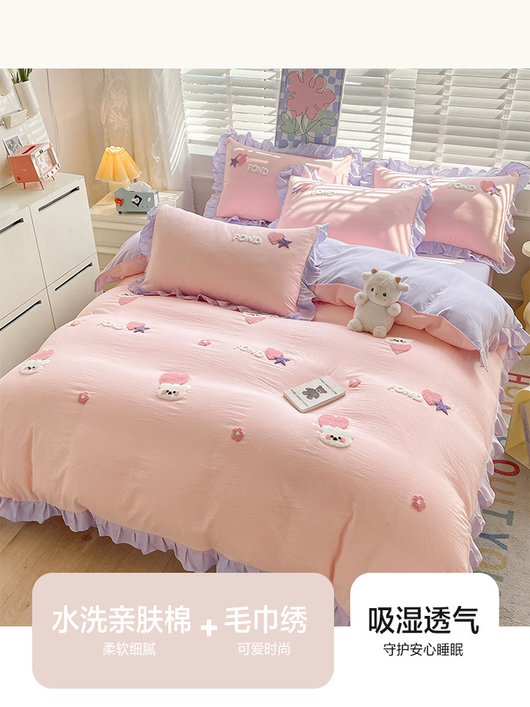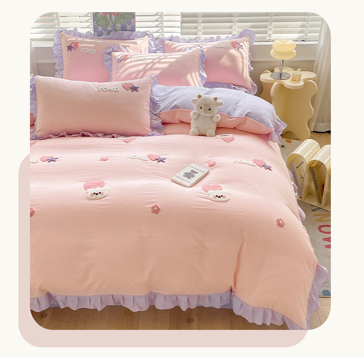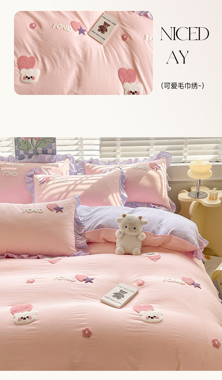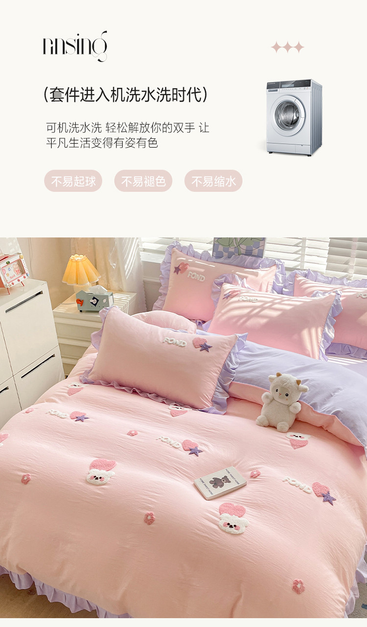 当前位置: 91家纺网 > 商品网购 > 床品套件 > 四件套 > 水洗棉四件套 > 易禾 2024新款 爱心小熊系列四件套 爱心小熊粉紫