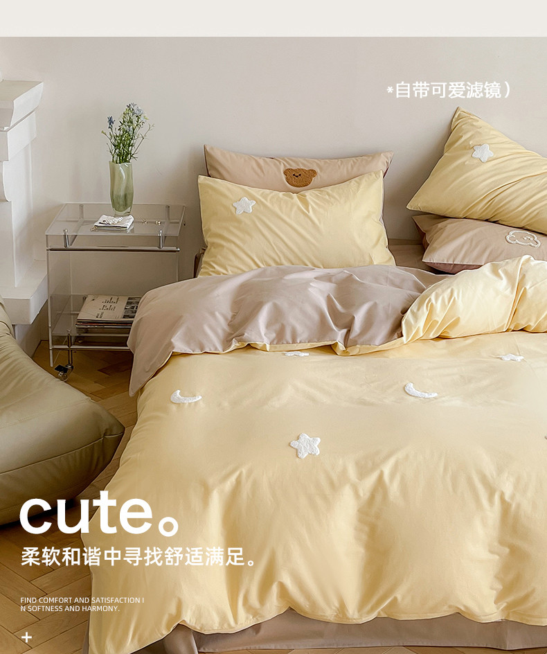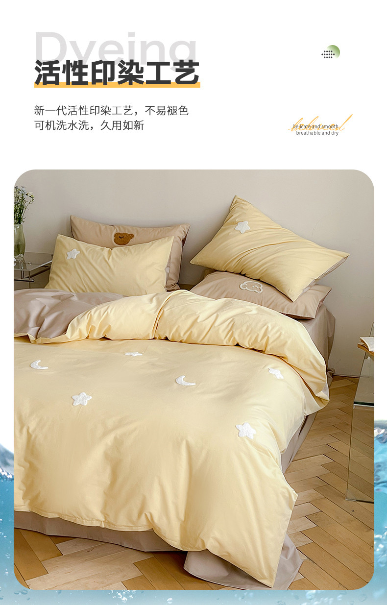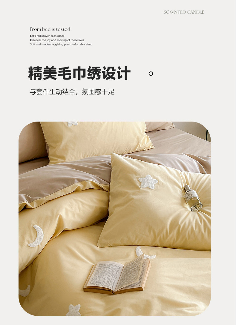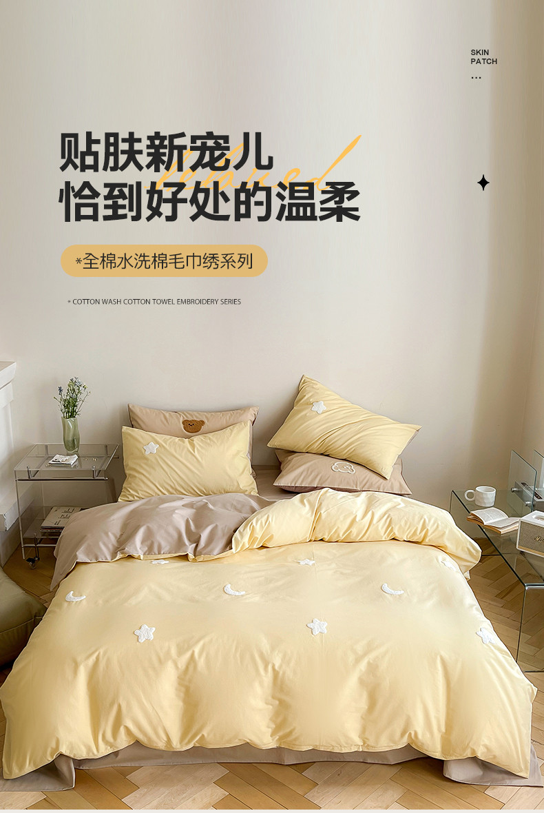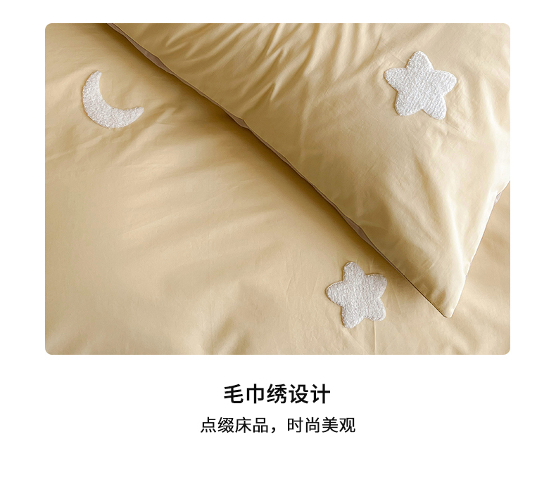 当前位置: 91家纺网 > 商品网购 > 床品套件 > 四件套 > 全棉普通四件套 > 时年 全棉水洗棉毛巾绣系列 40水洗-黄星星