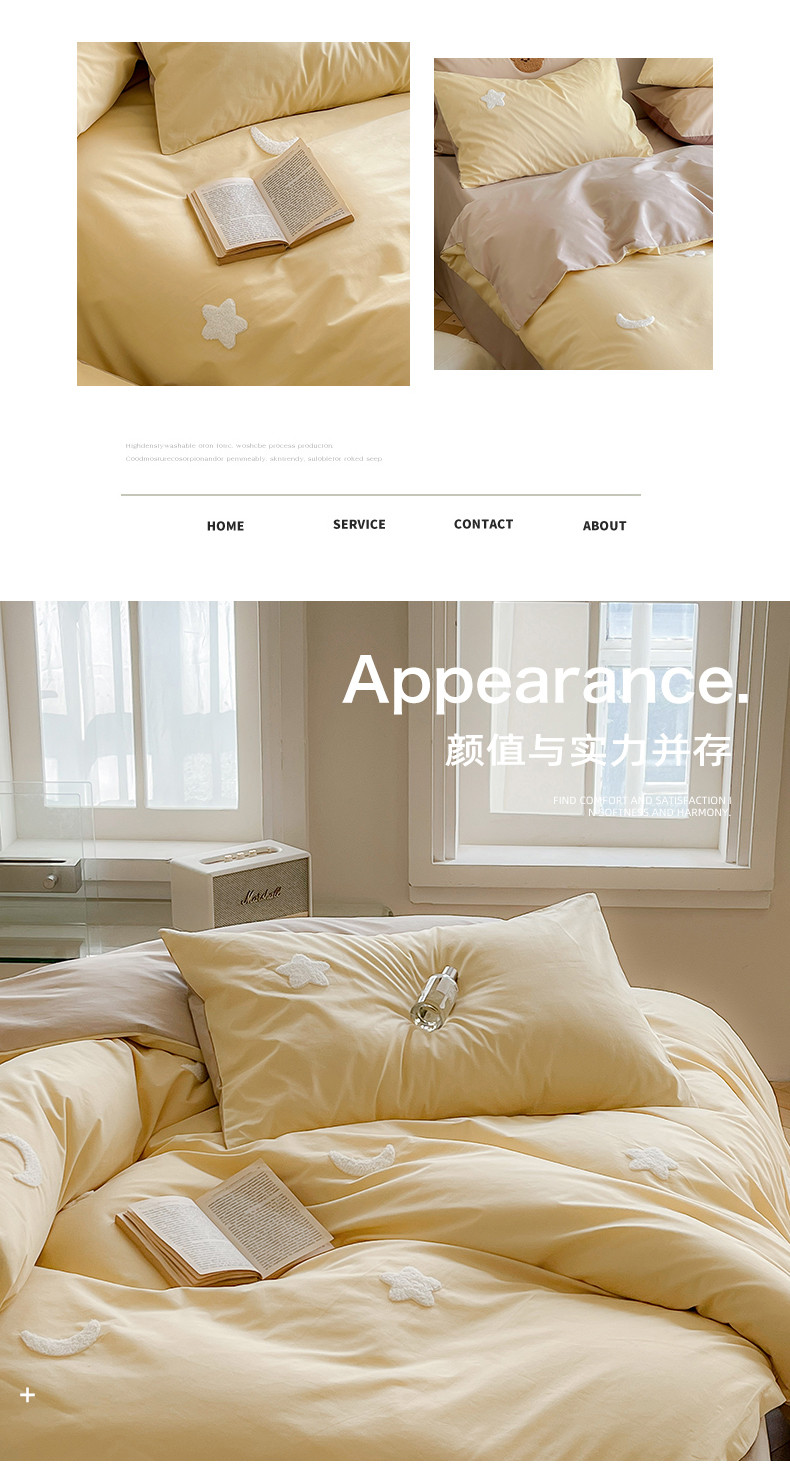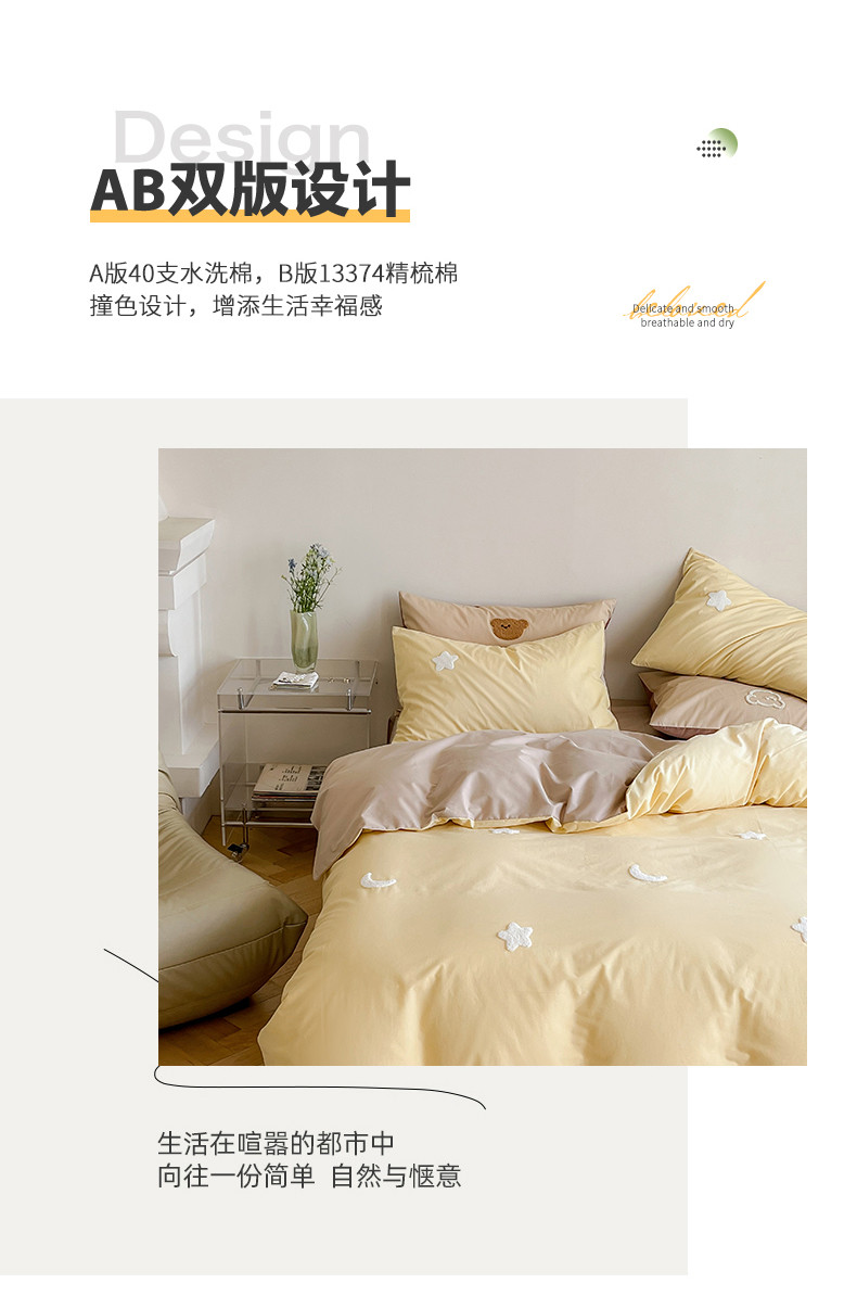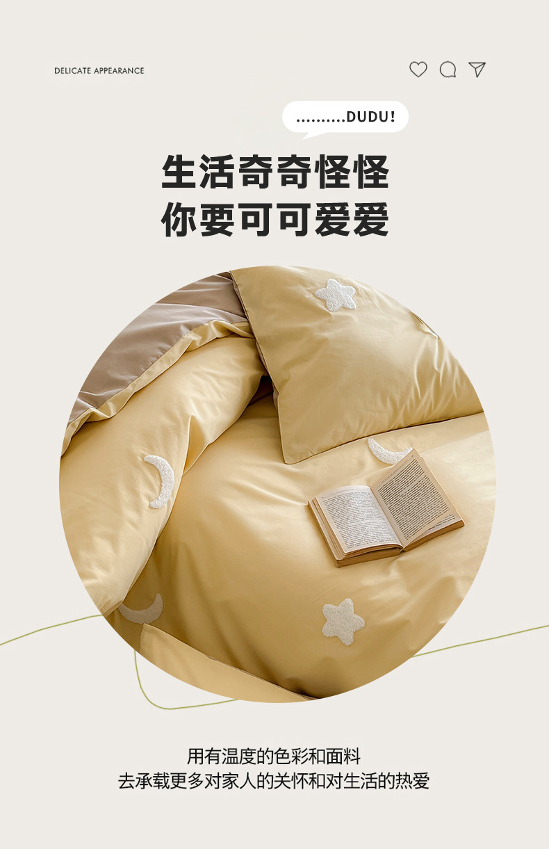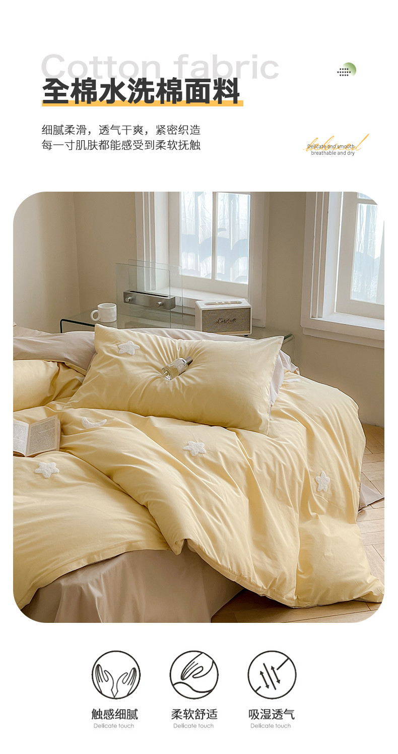 当前位置: 91家纺网 > 商品网购 > 床品套件 > 四件套 > 全棉普通四件套 > 时年 全棉水洗棉毛巾绣系列 40水洗-黄星星