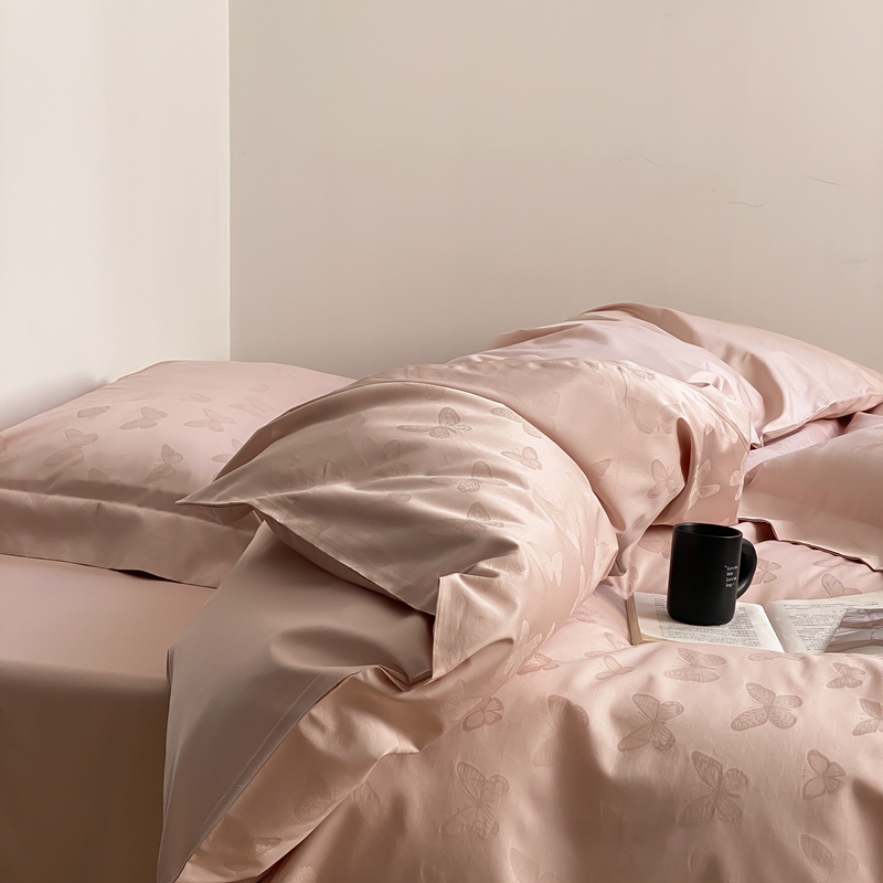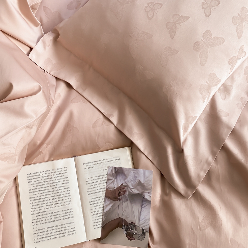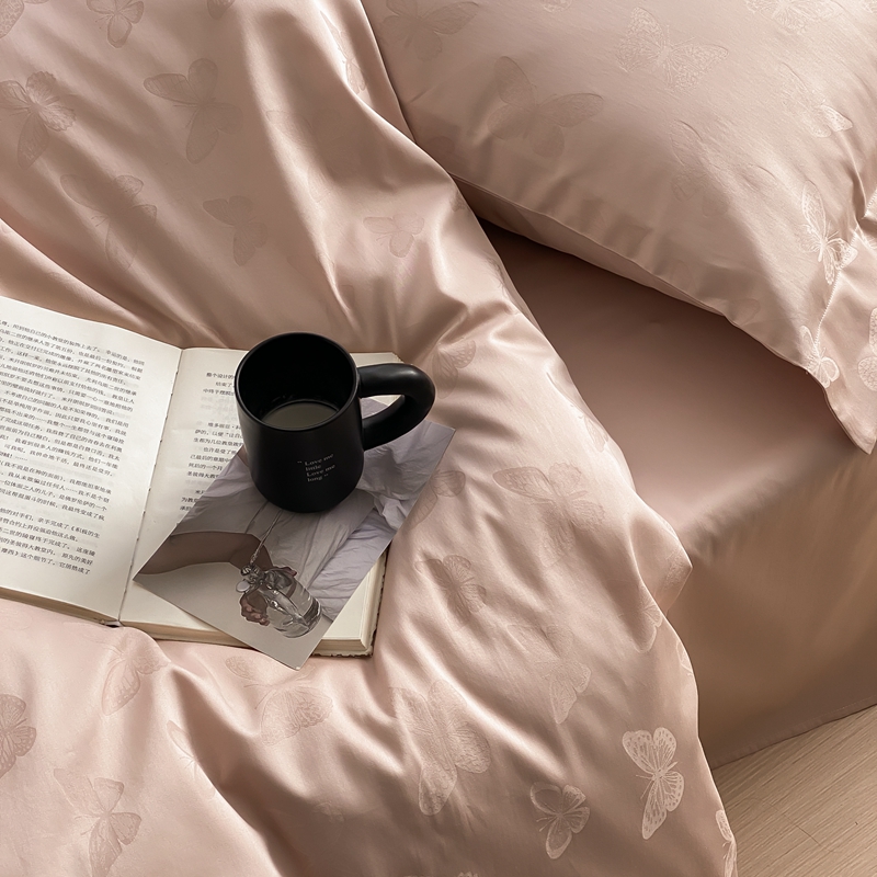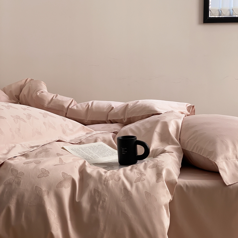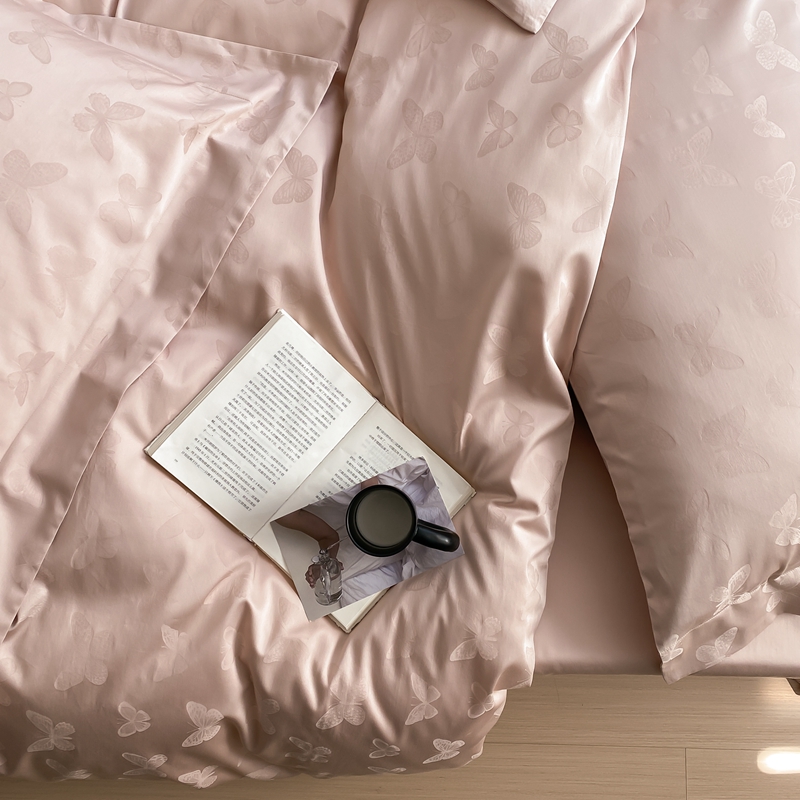 (总)爱丽丝 2026新款色织提花棉麻四件套-醒时见春花边款,醒时见春花边款