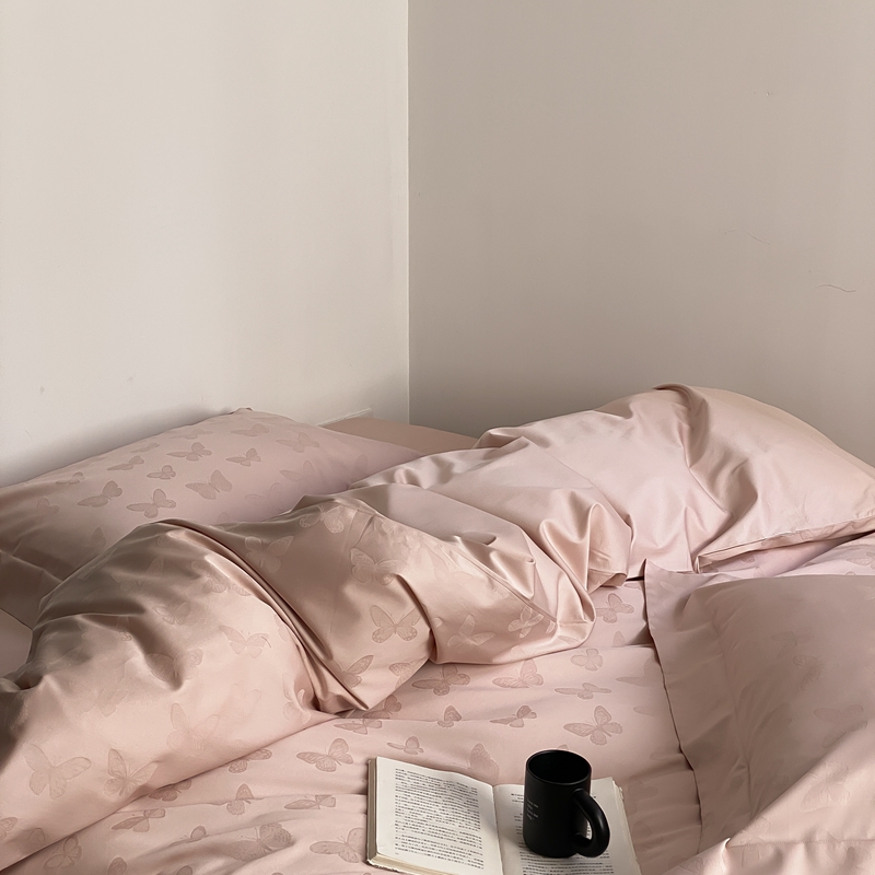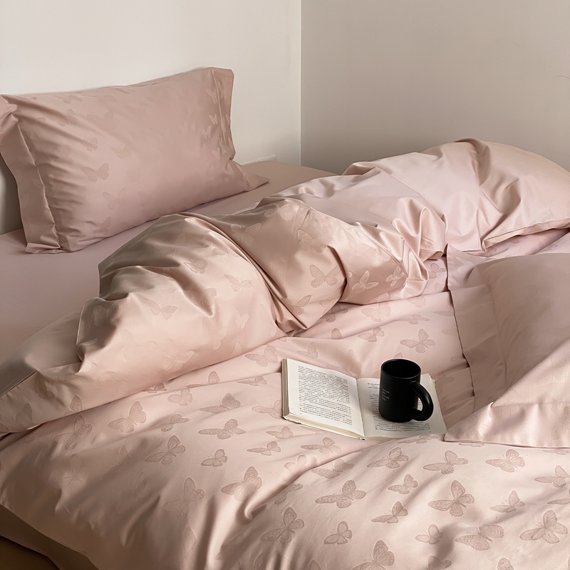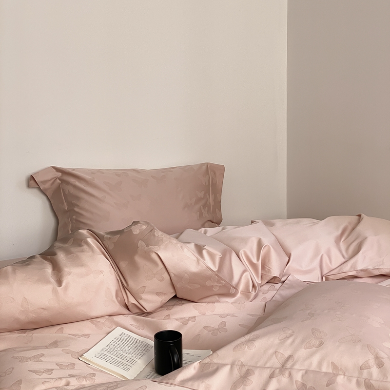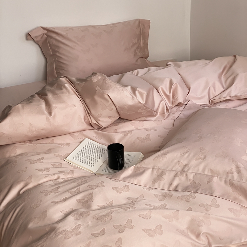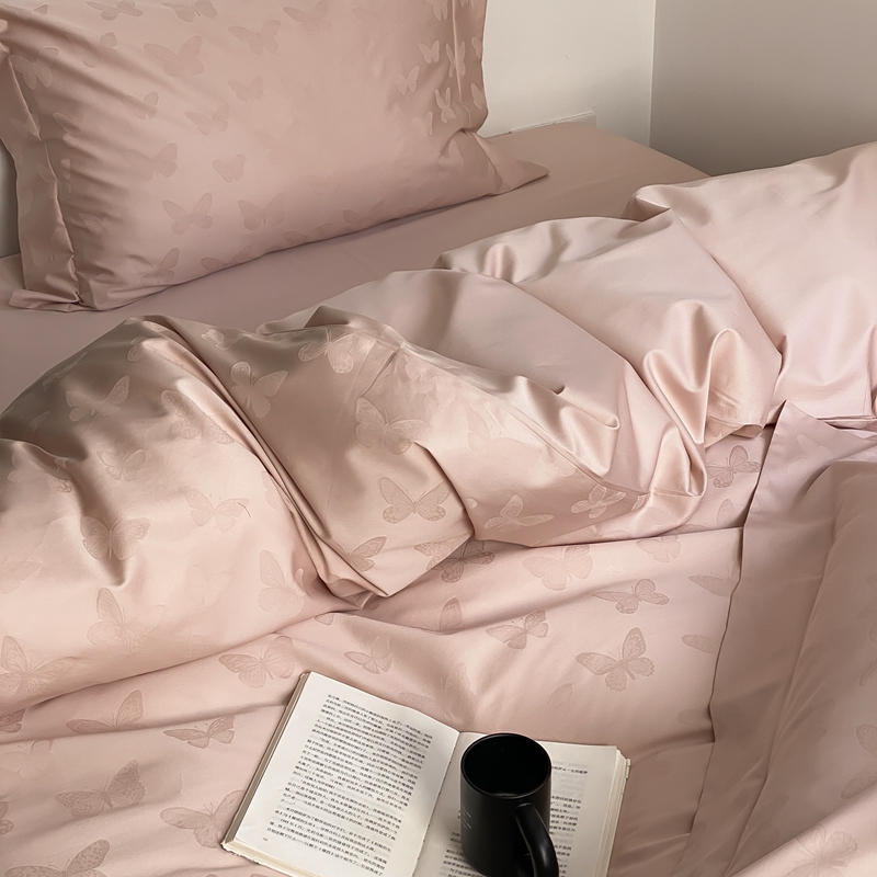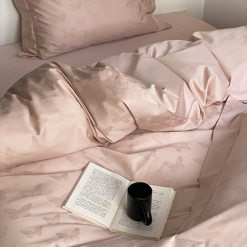 (总)爱丽丝 2026新款色织提花棉麻四件套-醒时见春花边款,醒时见春花边款