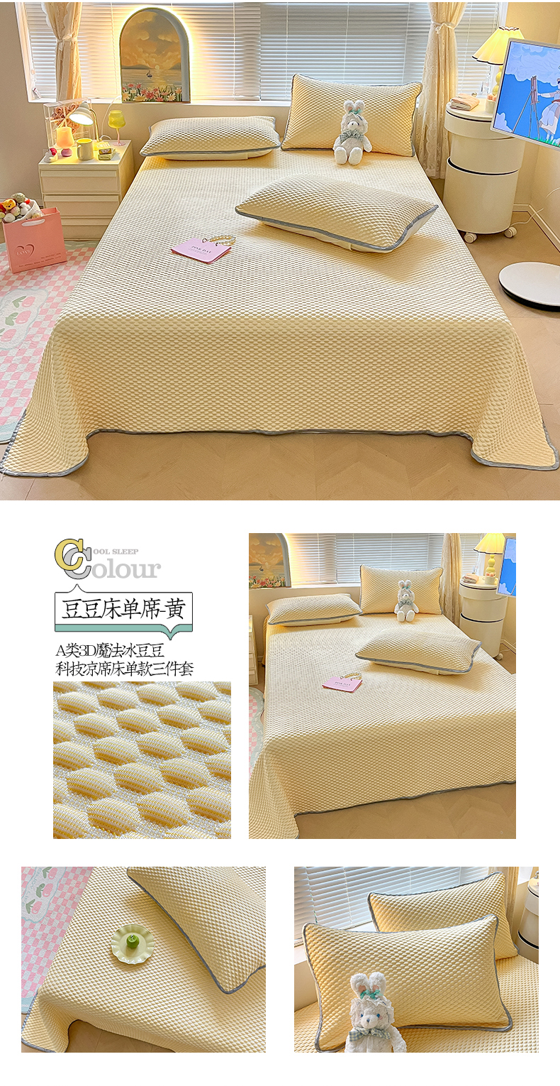 (总)2024新款A类3D魔法冰豆豆科技凉席床单款三件套系列