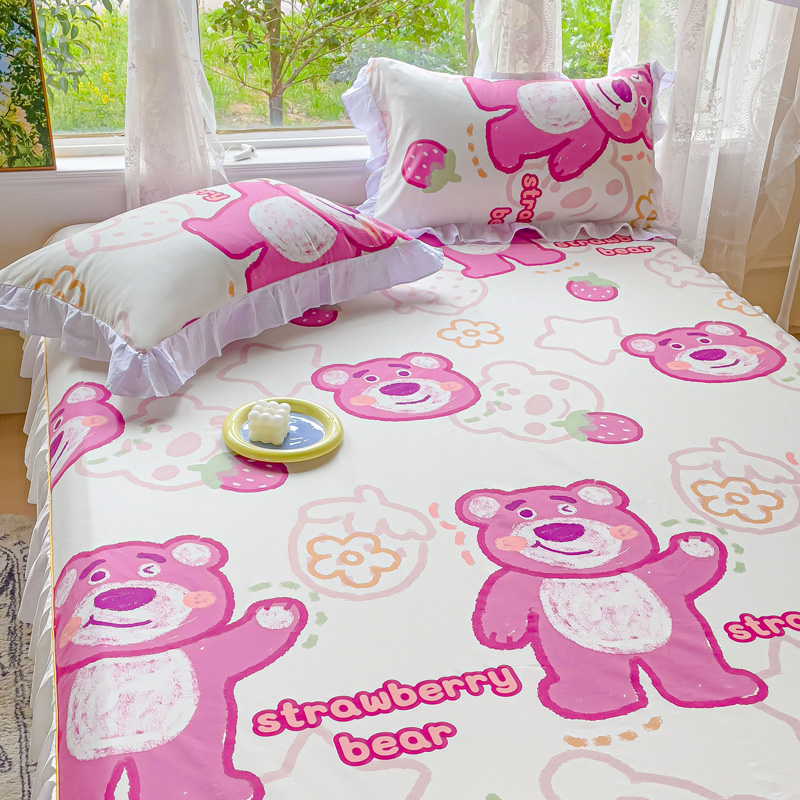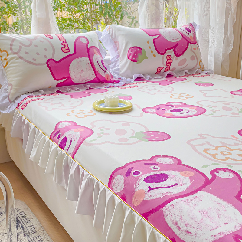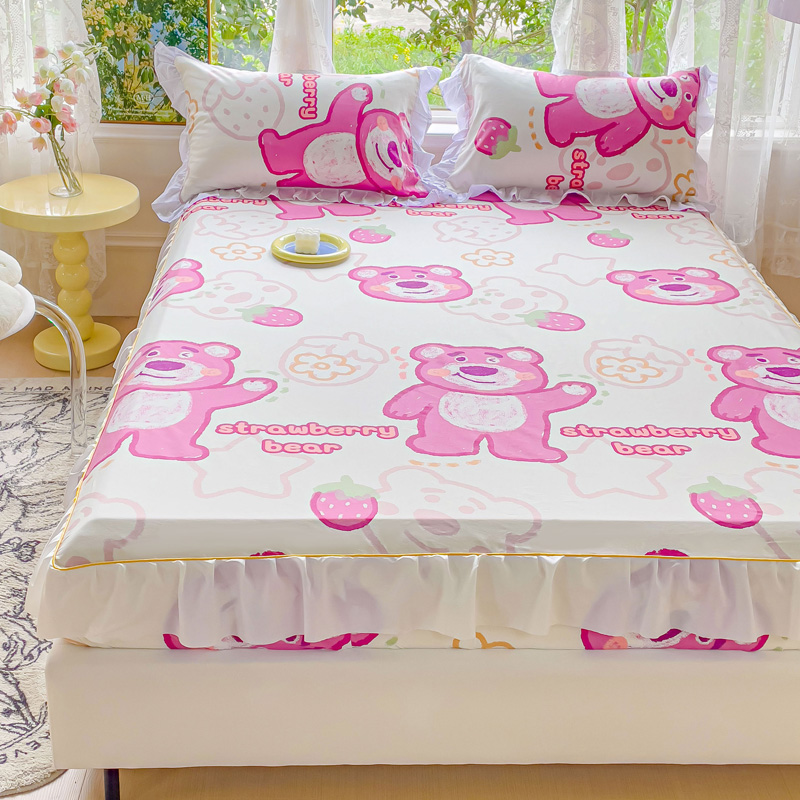 金丝鸟家纺 2023新款全棉花边床笠 草莓熊