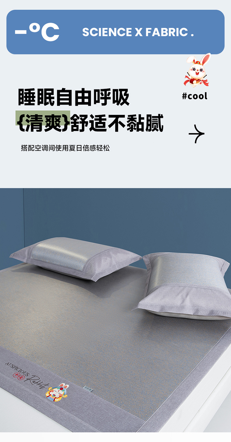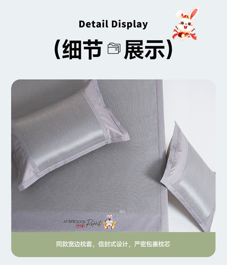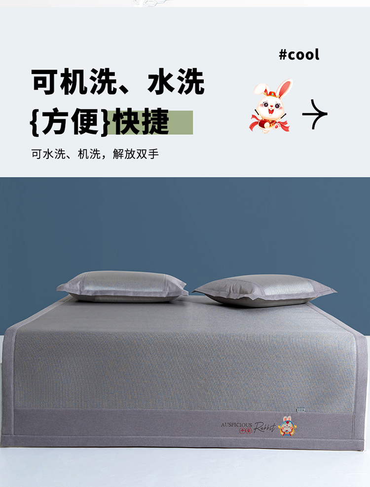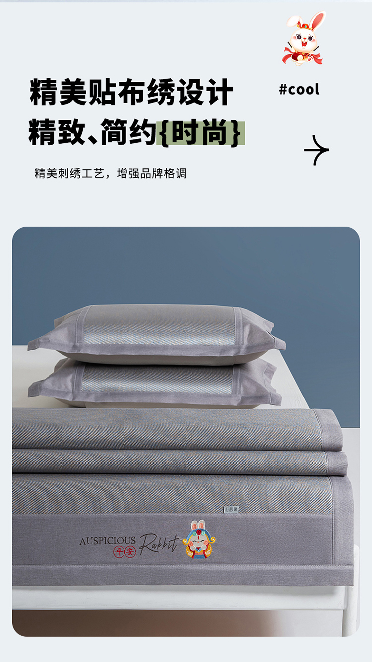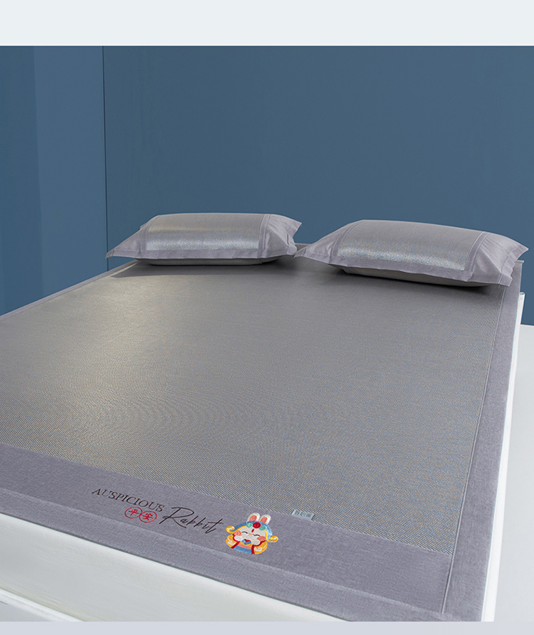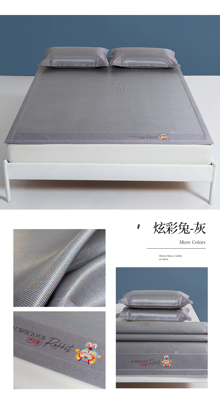 全季 2023新款全季家居中国风贴布绣冰藤席 炫彩兔-灰