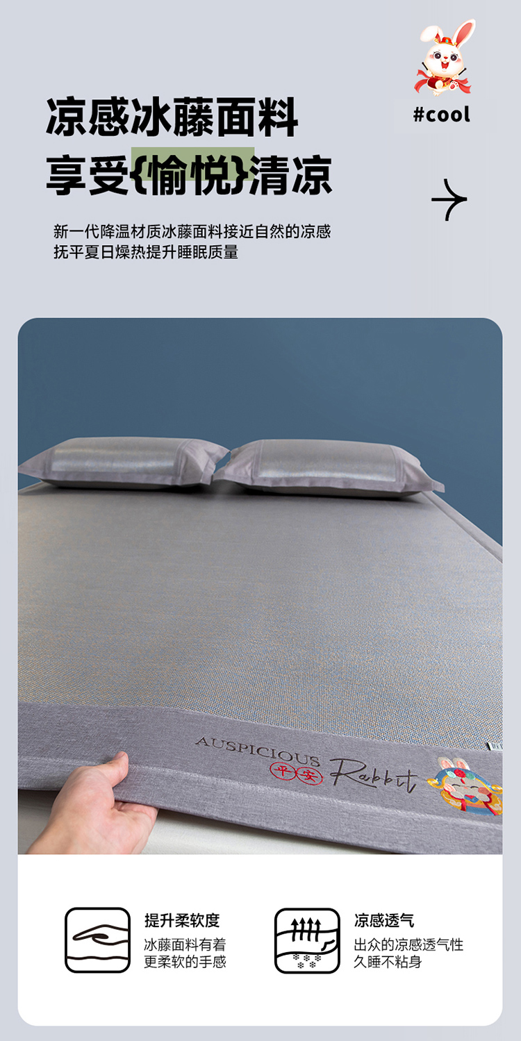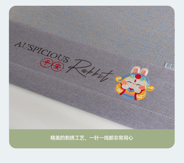 商品名称:全季 2023新款全季家居中国风贴布绣冰藤席 炫彩兔-灰