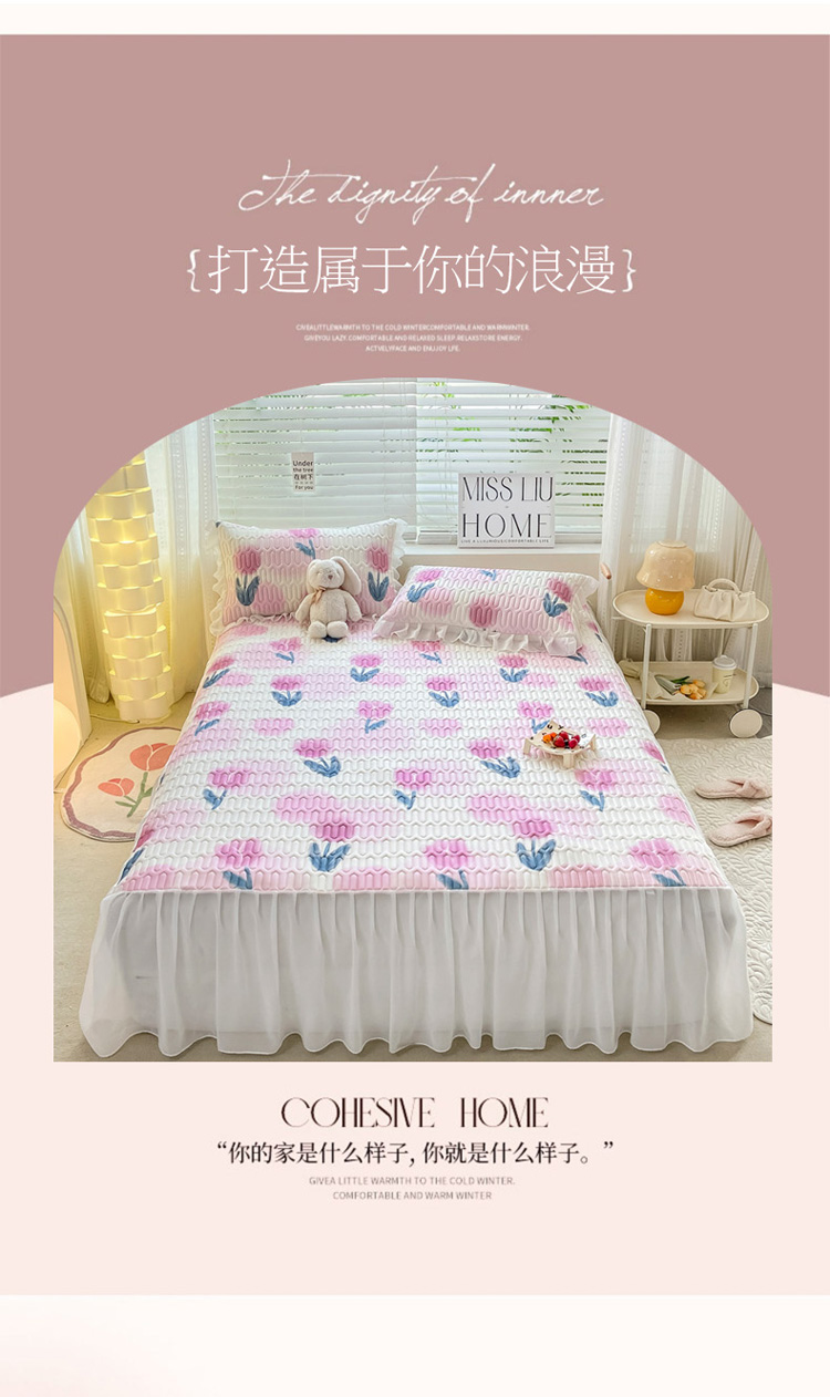 慕澄家纺 2024新款时尚印花泡泡棉花边夏被夏凉被空调被 夏被-心语,夏被-心语