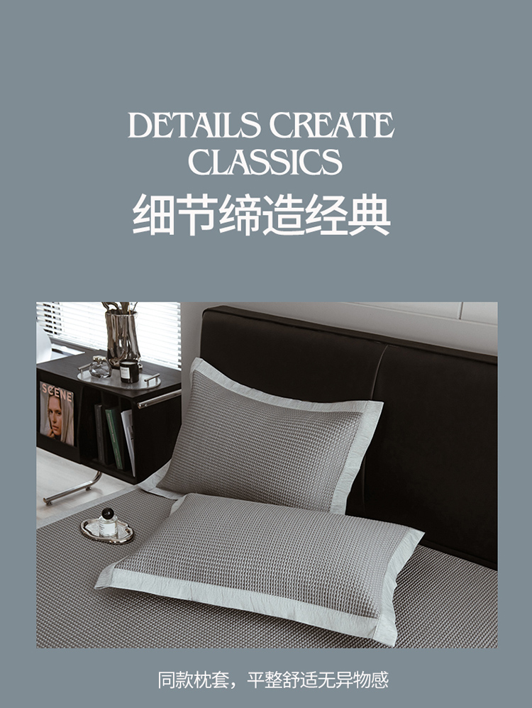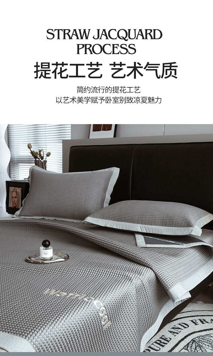 全季 2023新款纯色凉豆豆绣花款凉席 华夫格-烟灰
