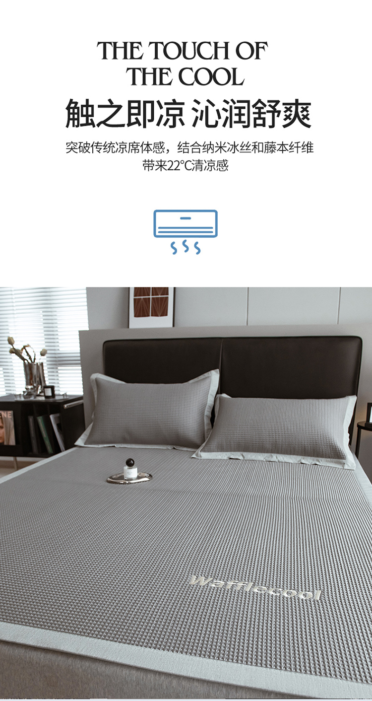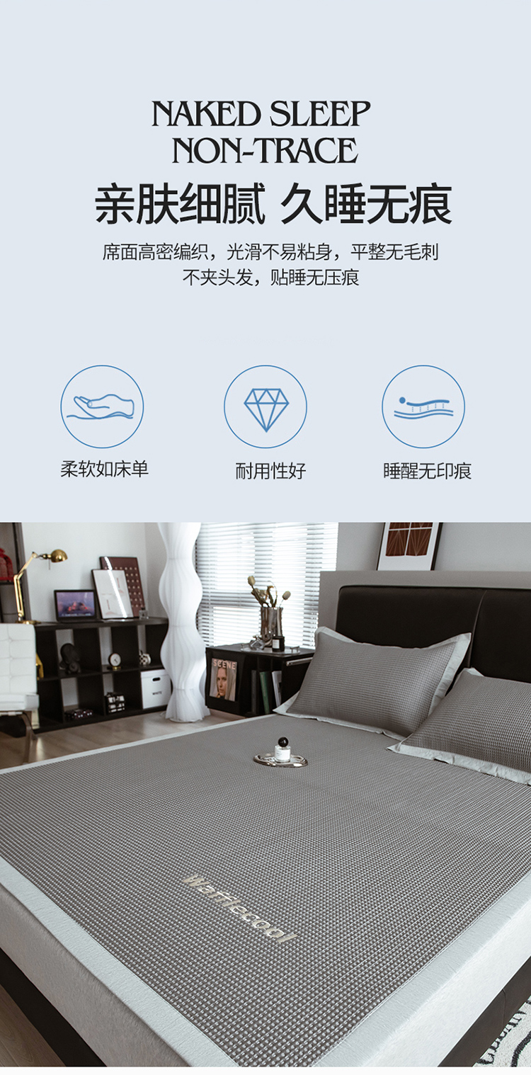 (总)全季家居 2023新款A类轻奢抗菌冰藤席,和意款-孔雀蓝,和意款-星际灰,和意款-薄荷绿,字母款-孔雀蓝,字母款-薄荷绿,字母款-星际灰