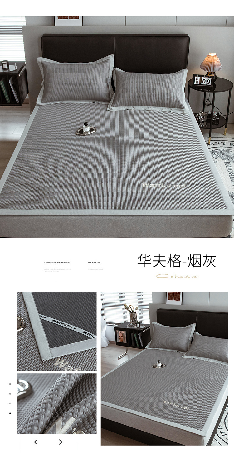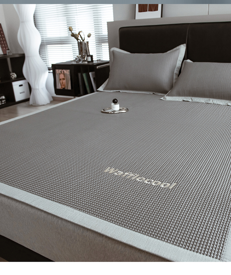商品名称:全季 2023新款纯色凉豆豆绣花款凉席 华夫格-烟灰