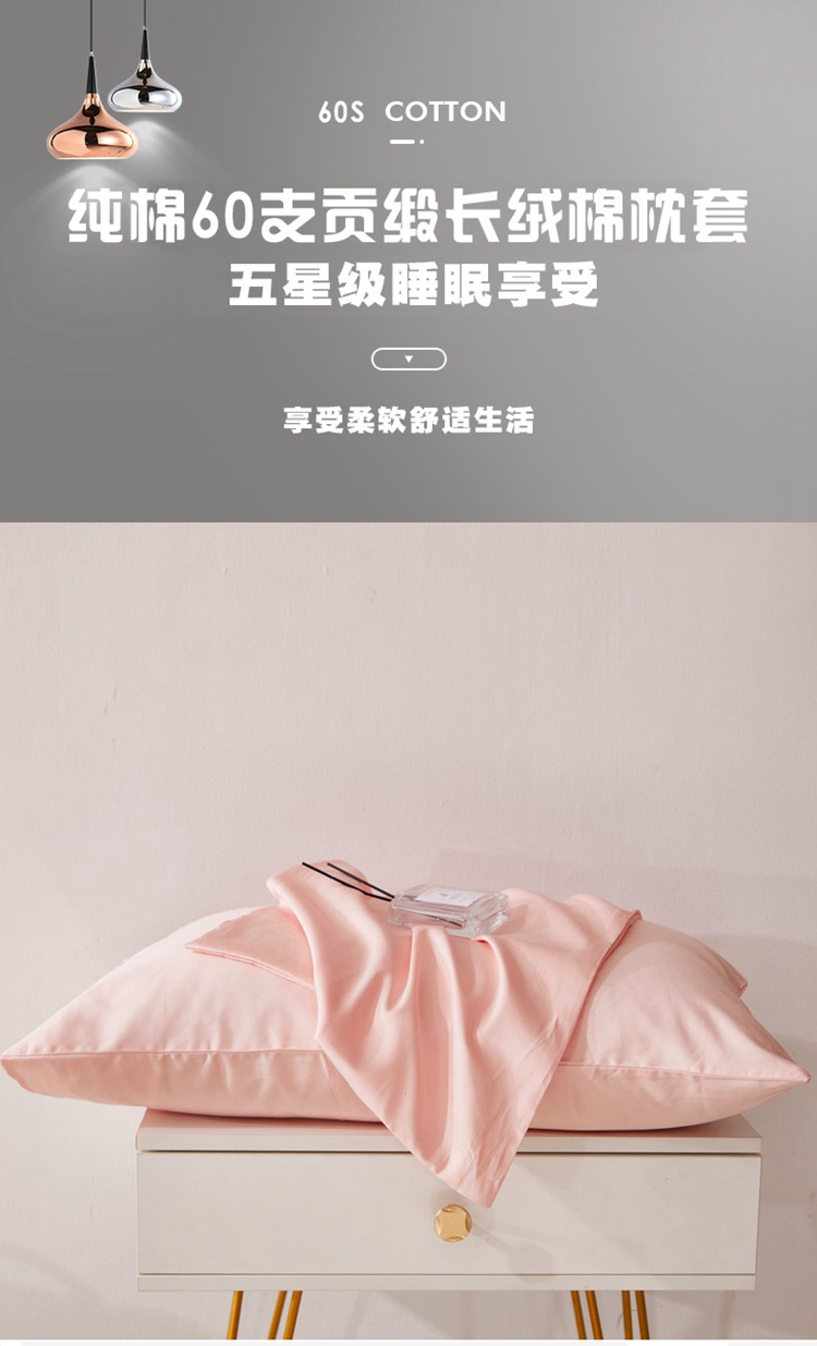 商品名称:晶缦 2023全棉纯棉60支贡缎长绒棉纯色多规格单品枕套 琅夕-浅粉玉37