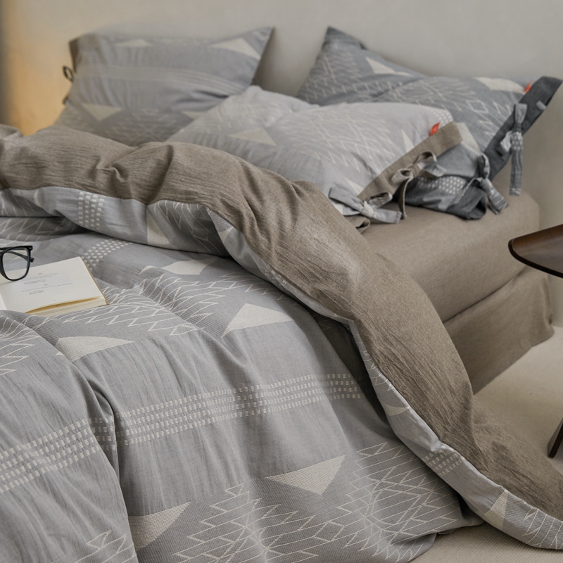 (总)安莱生活 2025春夏新款空气层色织提花四件套南阳假日系列,南阳假日-灰咖,南阳假日-卡其,南阳假日-银灰