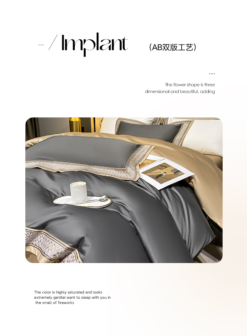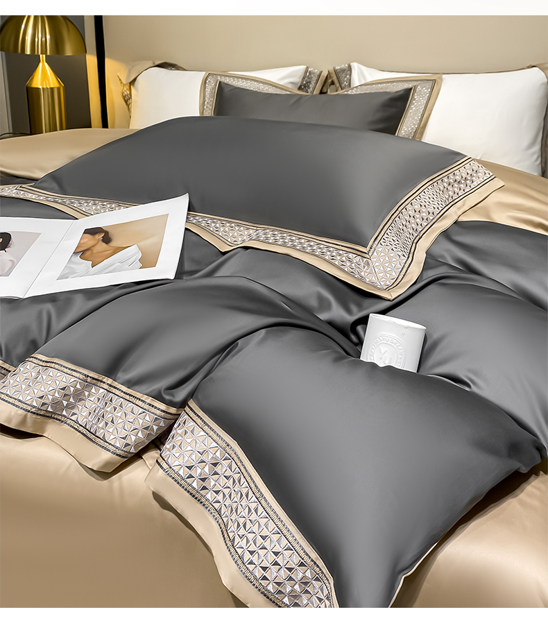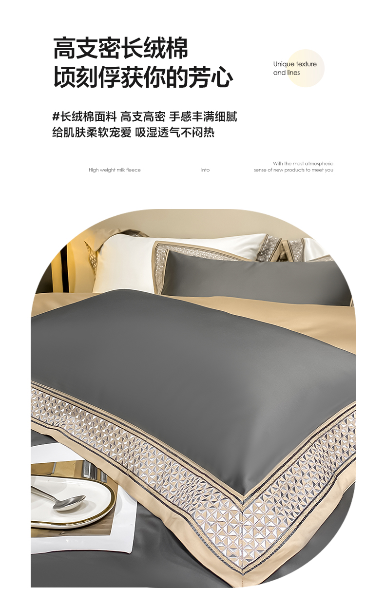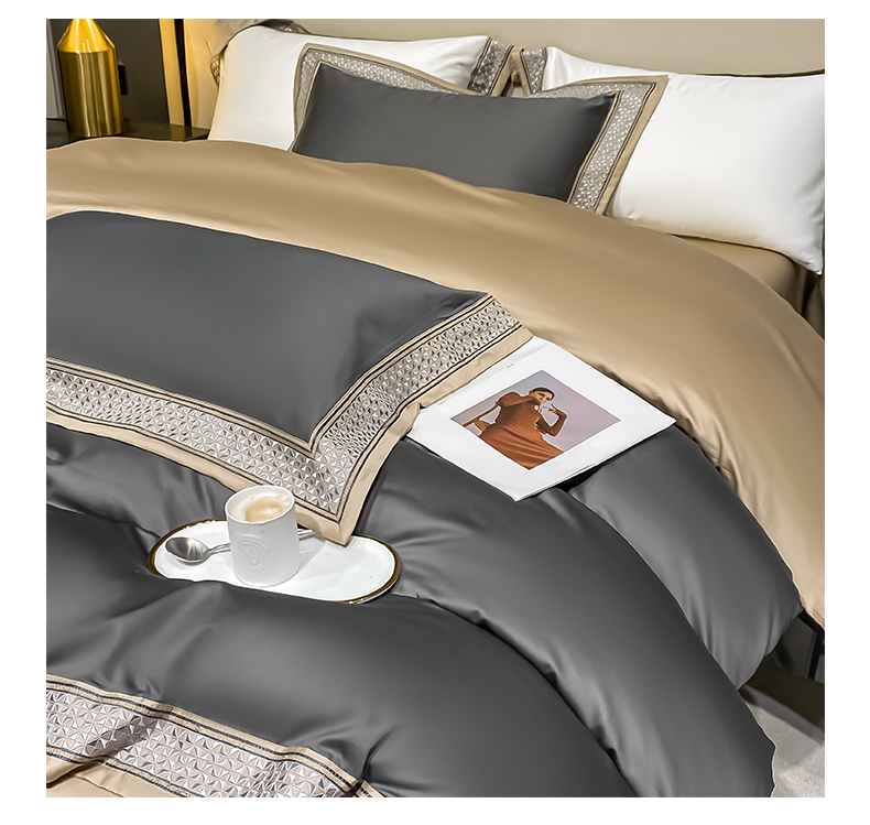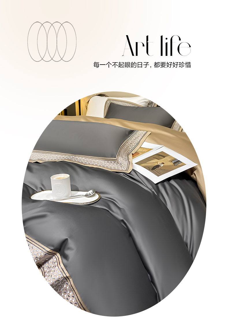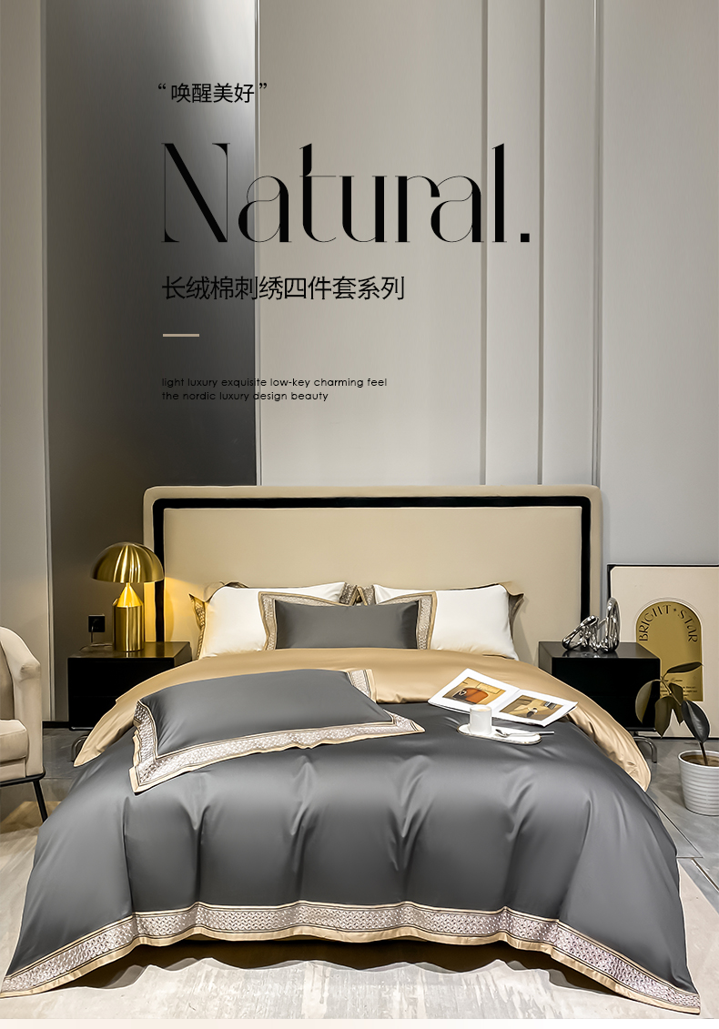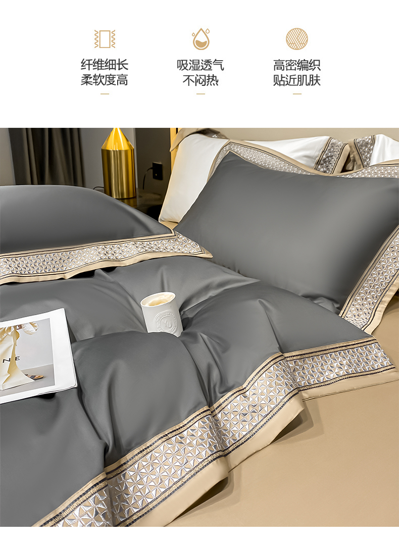 金麦 2023款40支13372全棉刺绣四件套—简尚系列 简尚-高级灰