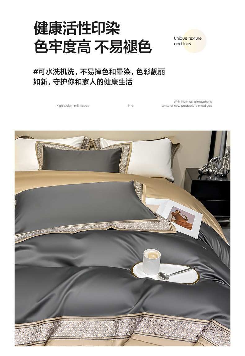 (总)金麦家纺 2025新款牛奶绒撞色拼边四件套贝拉系列,贝拉-海洋蓝,贝拉-宾利蓝,贝拉-粉色,贝拉-灰色,贝拉-香槟色