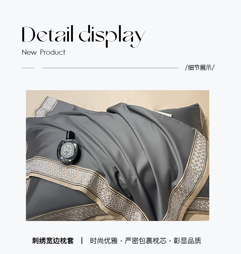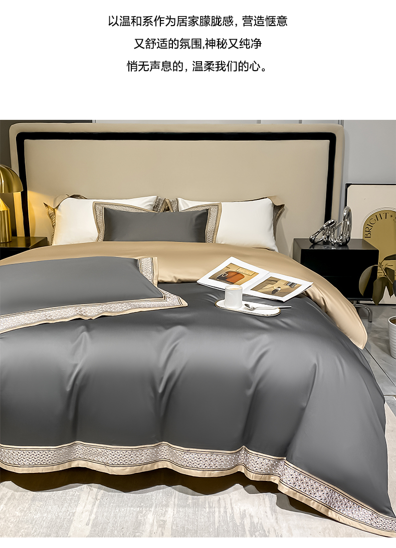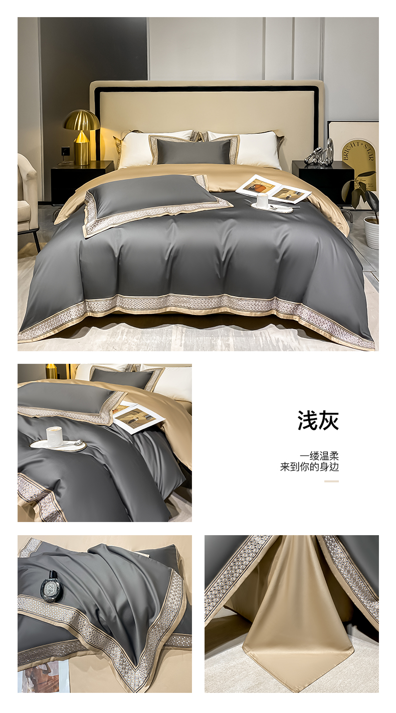 商品名称:金麦 2023款40支13372全棉刺绣四件套—简尚系列 简尚-高级灰