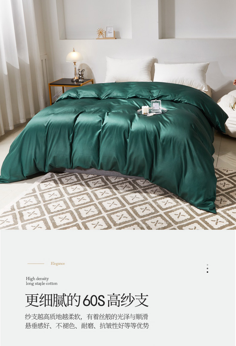 晶缦家纺 2023全棉纯棉60支贡缎长绒棉纯色多规格四件套单品被套 琅夕-墨绿色