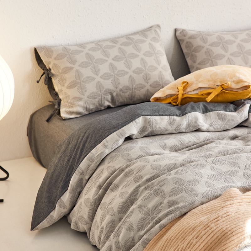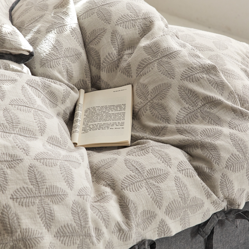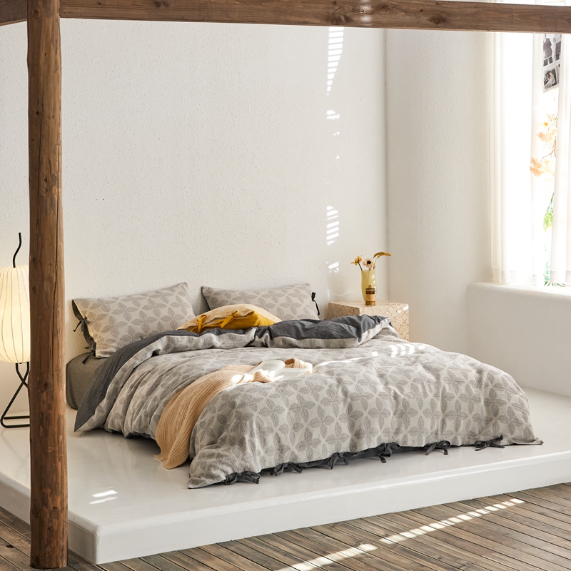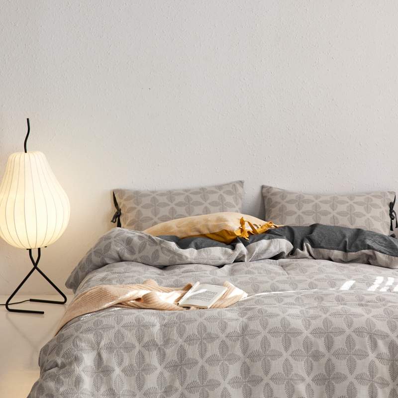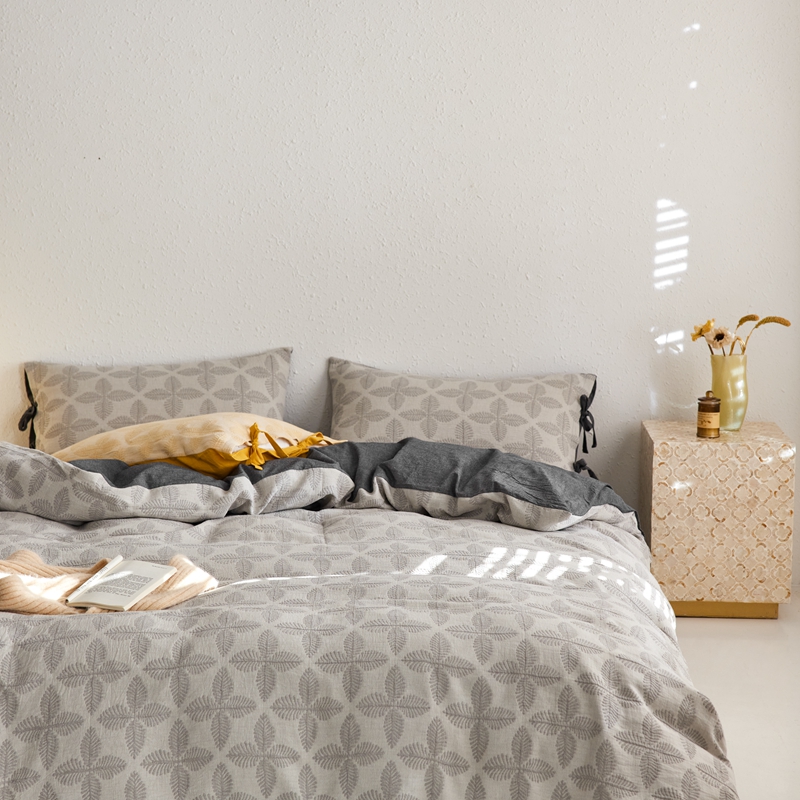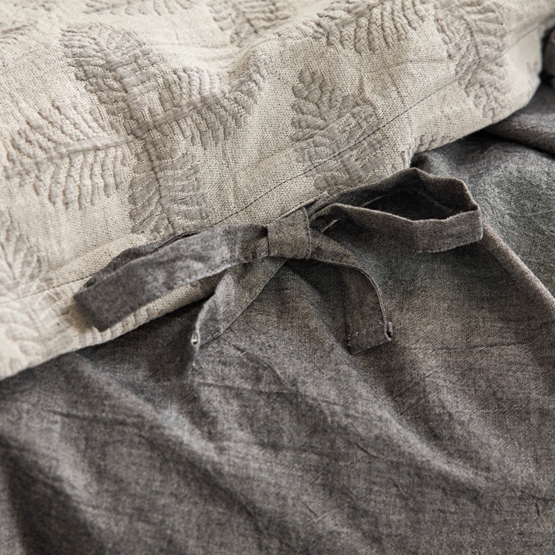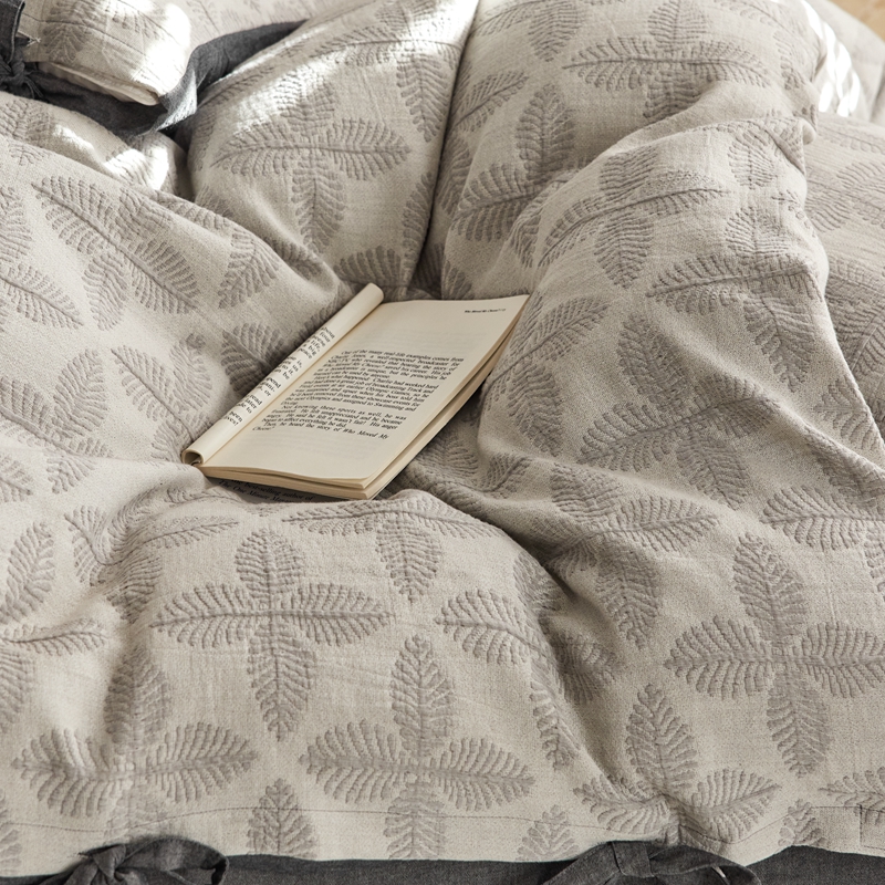 安莱生活 2023年新款高端双层纱栀子花色织大提花蝴蝶结工艺款四件套 幸运草-深灰