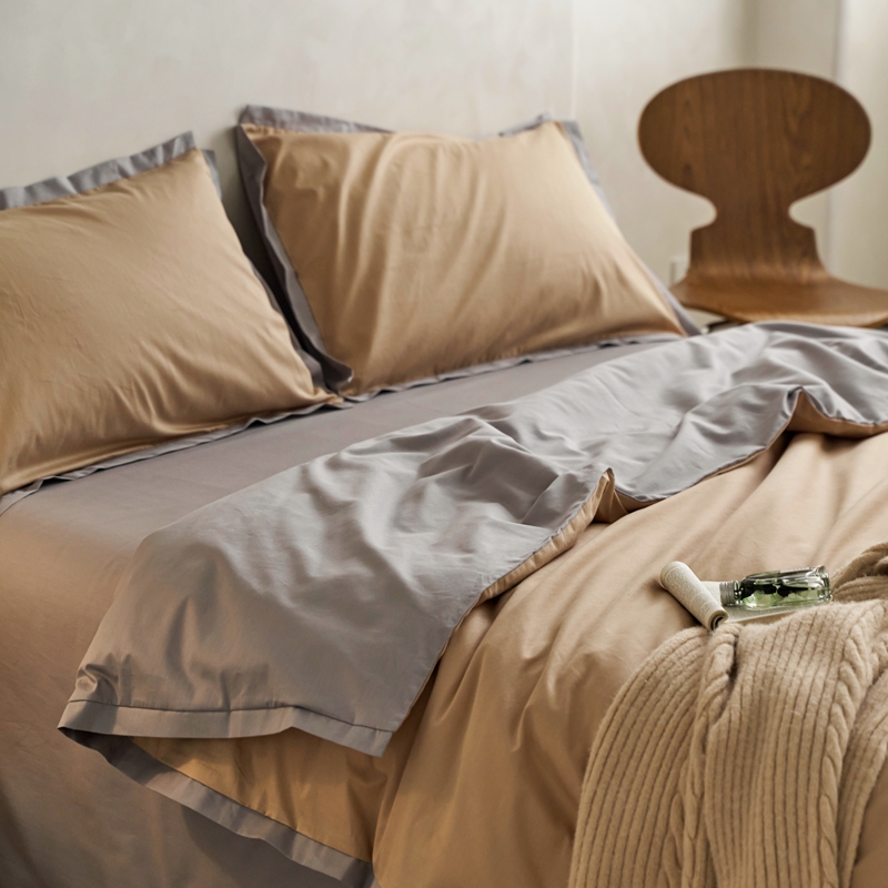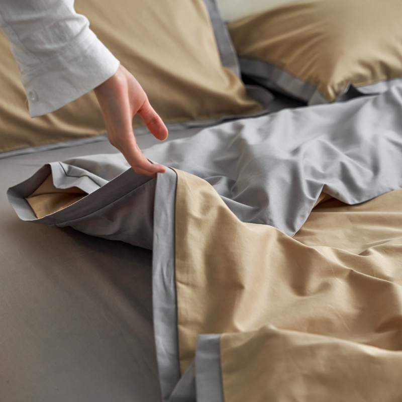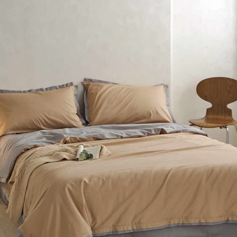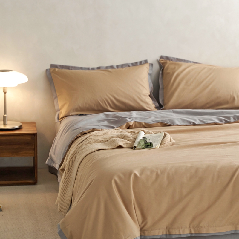 当前位置: 91家纺网 > 商品网购 > 床品套件 > 四件套 > 全棉普通四件套 > 安莱生活 2023新款60贡缎双拼小宽边四件套 卡其双拼浅灰