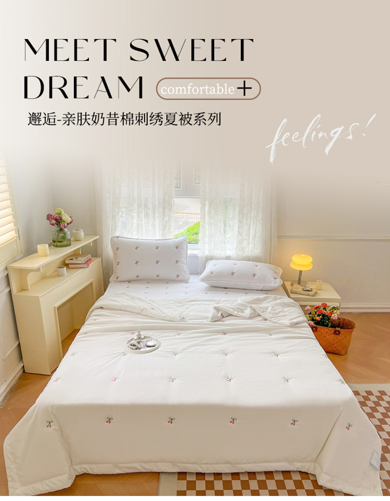 尊康家纺(原磊科) 2024新款亲肤奶昔棉刺绣夏被 夏被-珍珠白