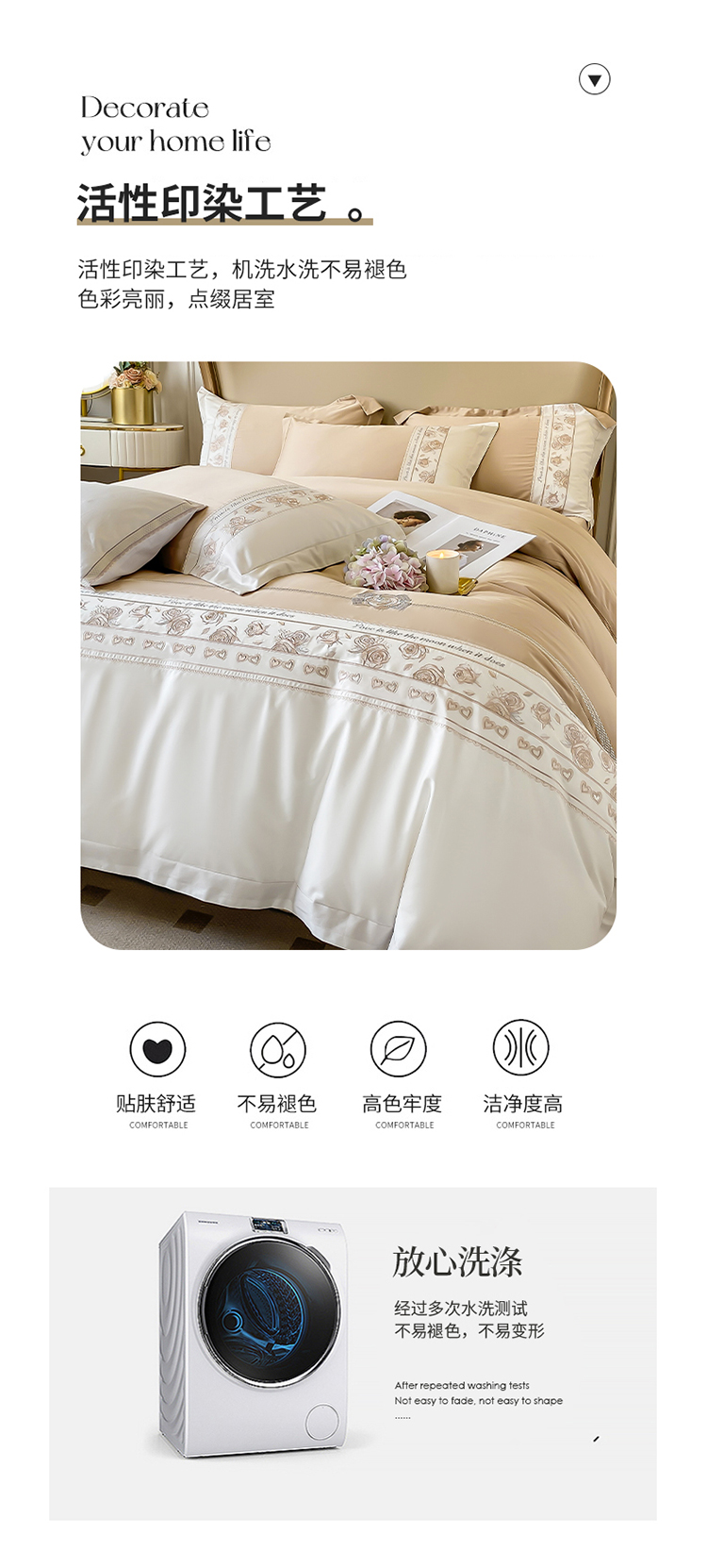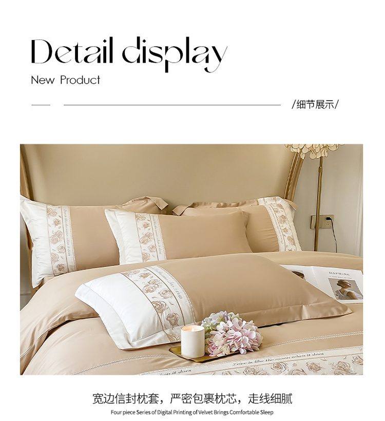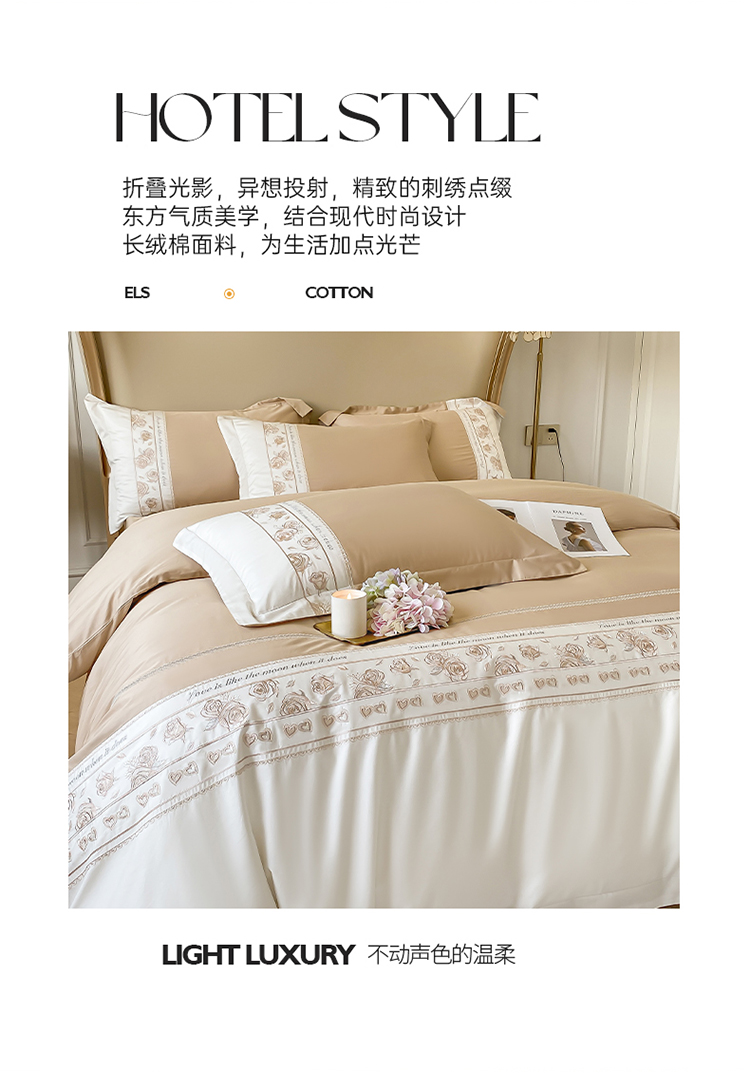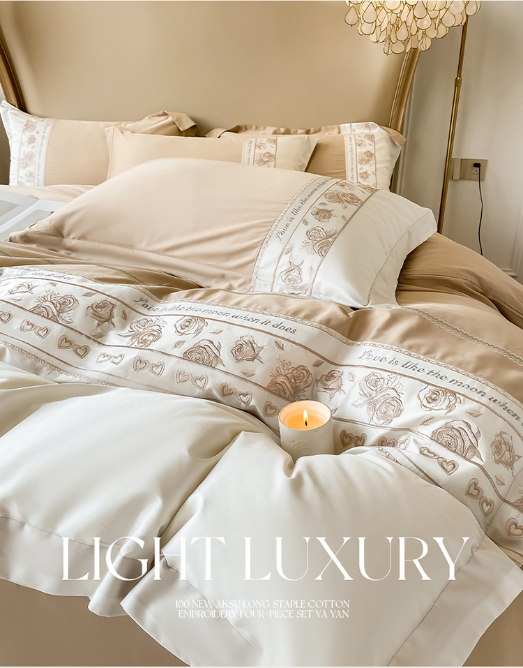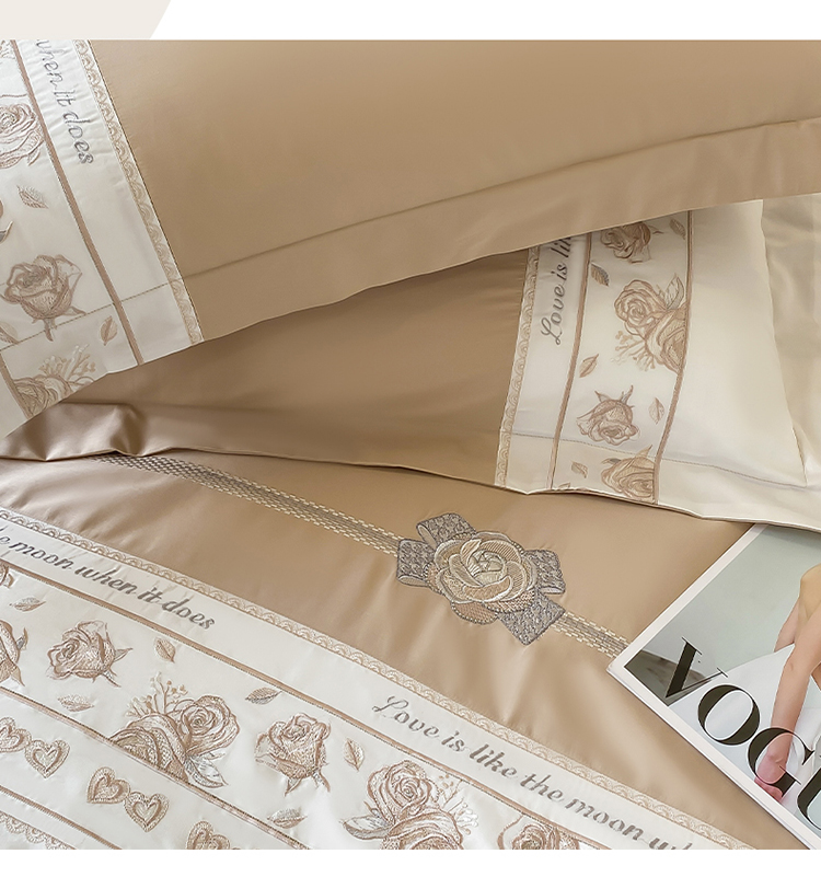 魅都100阿克苏长绒棉刺绣四件套--雅颜系列 雅颜-香槟金