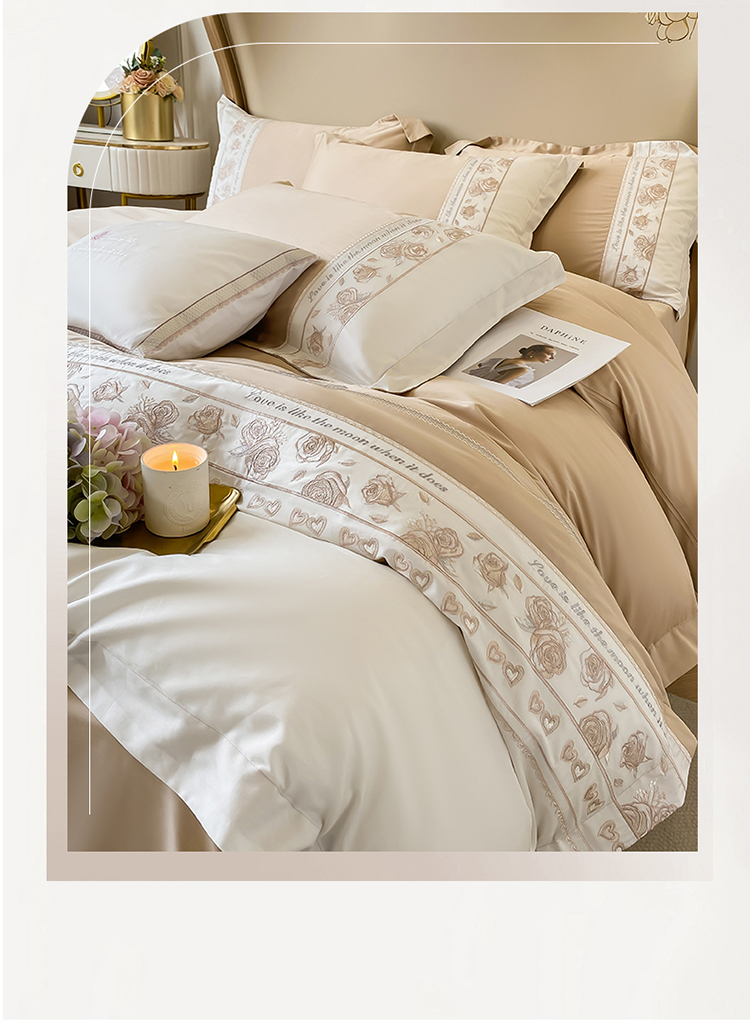 (总)魅都 2025新款100S全棉刺绣款四件套-心恋,米白,飘蓝,浅紫,松绿