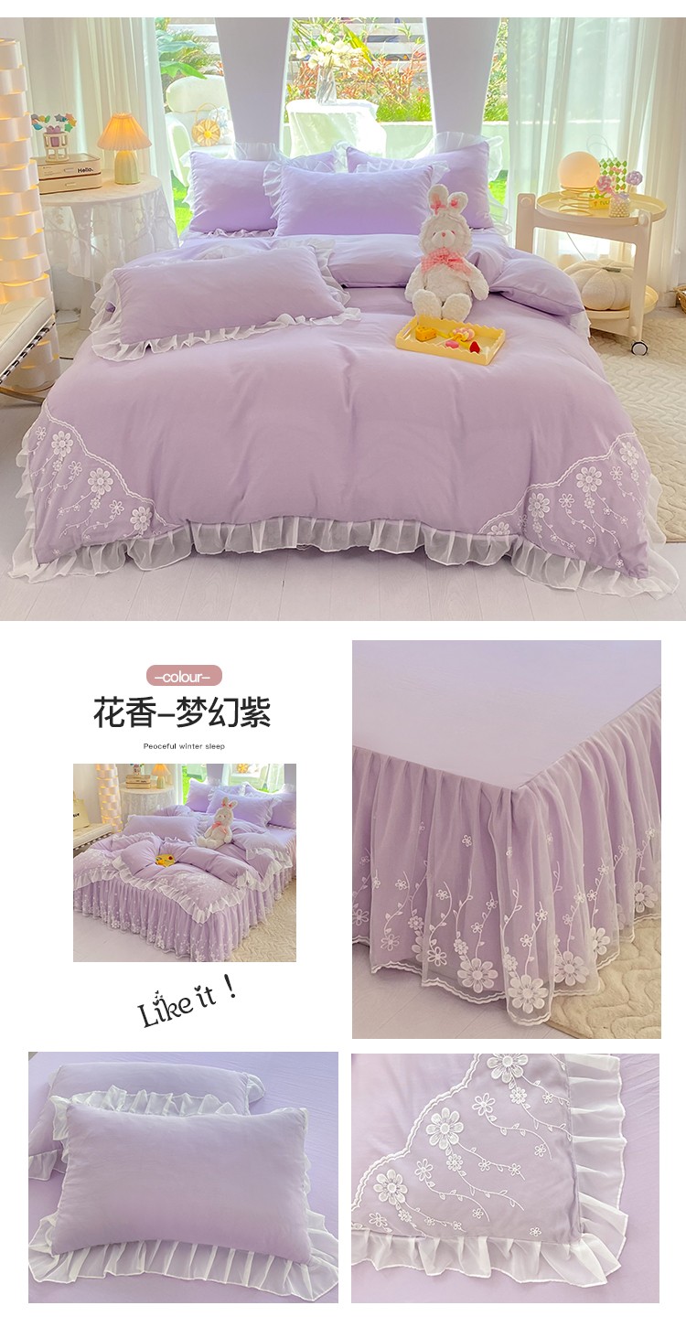 商品名称:唐人居 2025新款水洗棉麻花边款花香系列四件套 花香-梦幻紫