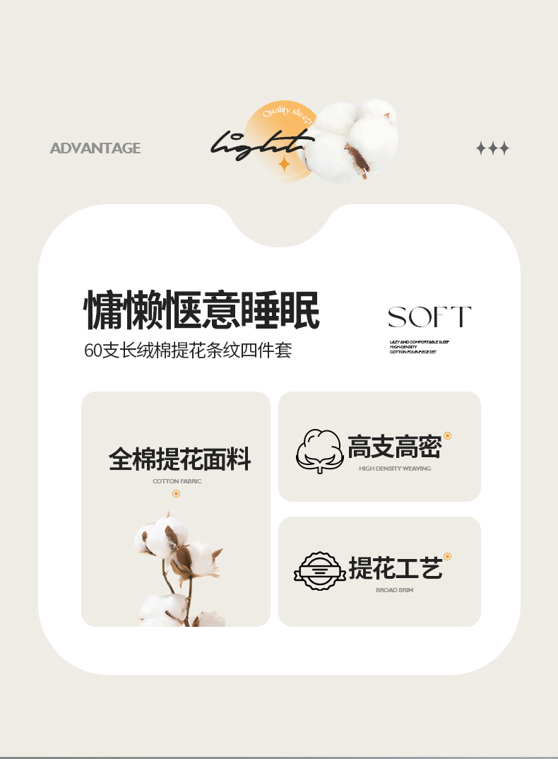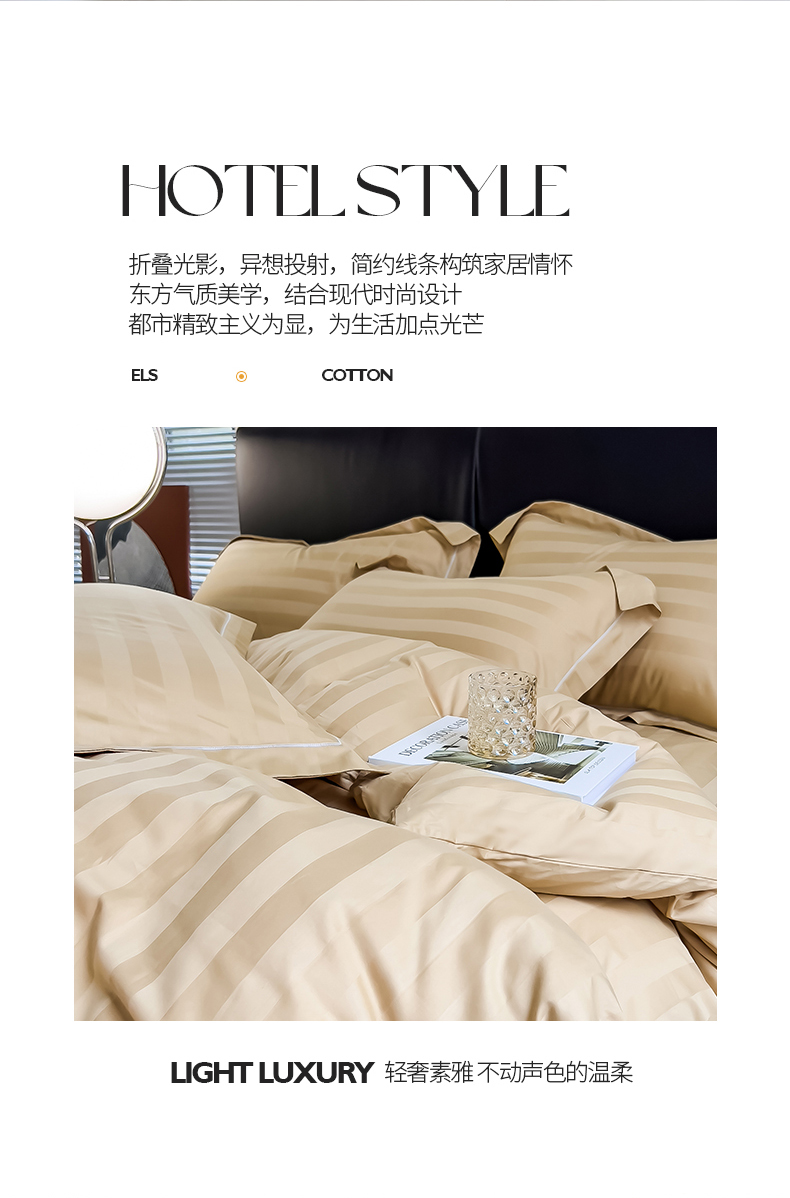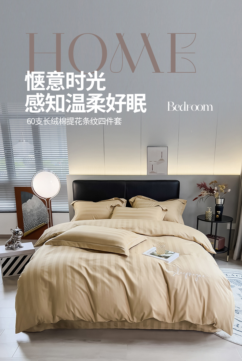 当前位置: 91家纺网 > 商品网购 > 床品套件 > 四件套 > 化纤普通四件套 > 品乐 2023新款 60支长绒棉提花条纹四件套条纹卡其