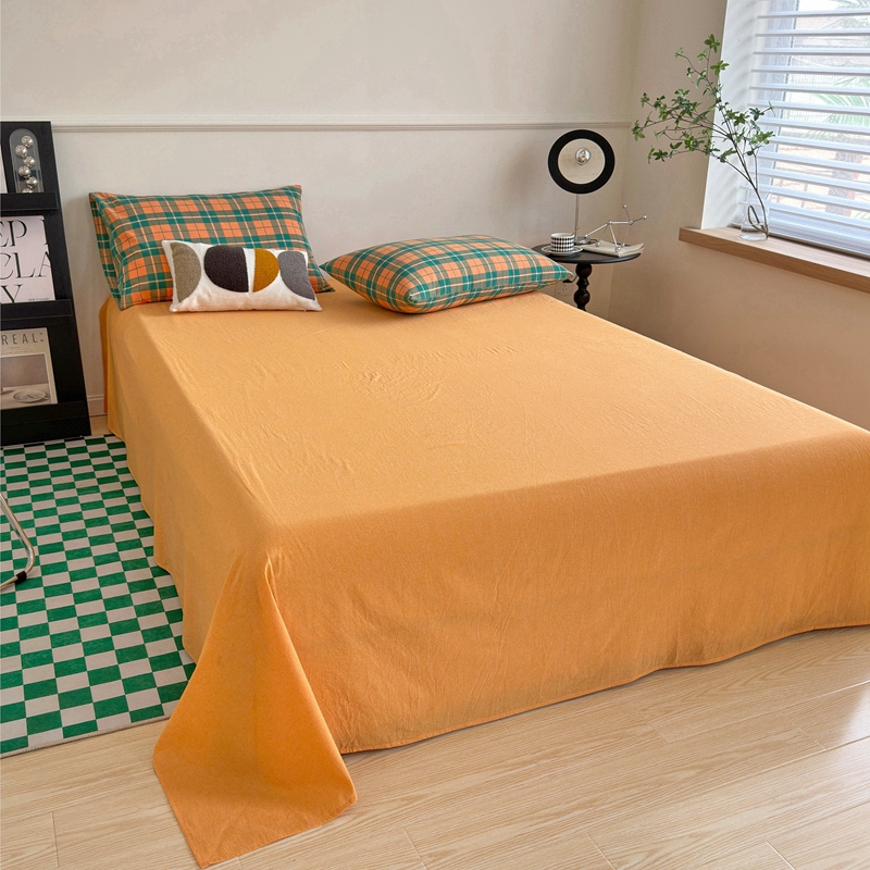 三沁 2023新款直播爆款色织水洗棉单品系列单床单 橙 色