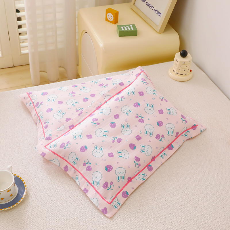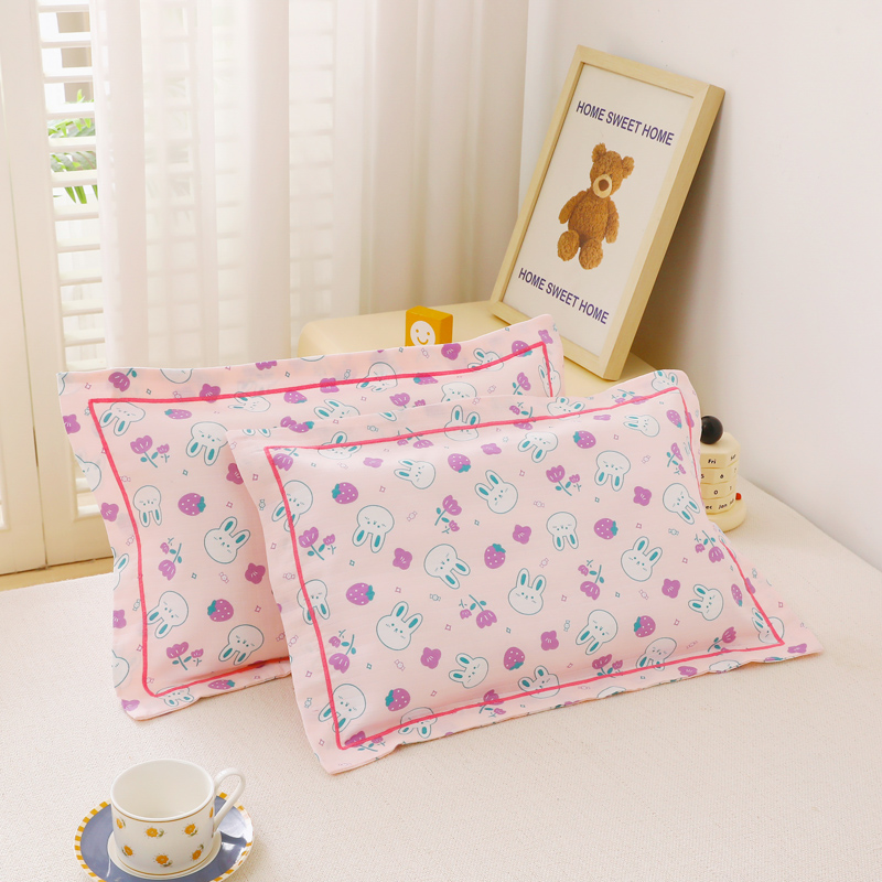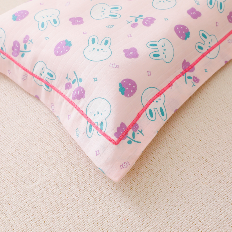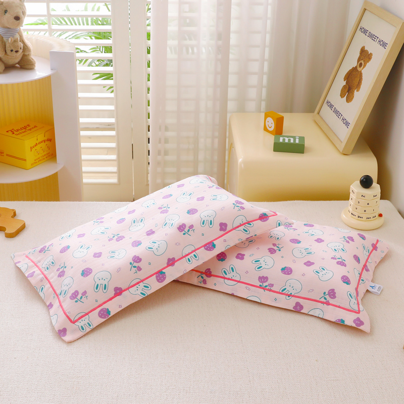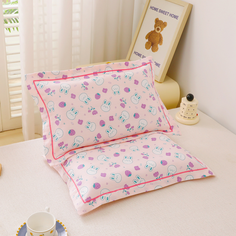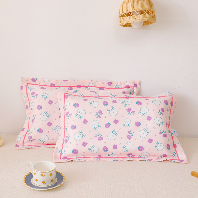 乐秀家纺 2023新款A类双层纱卡通印花儿童幼儿园枕套 花园小兔