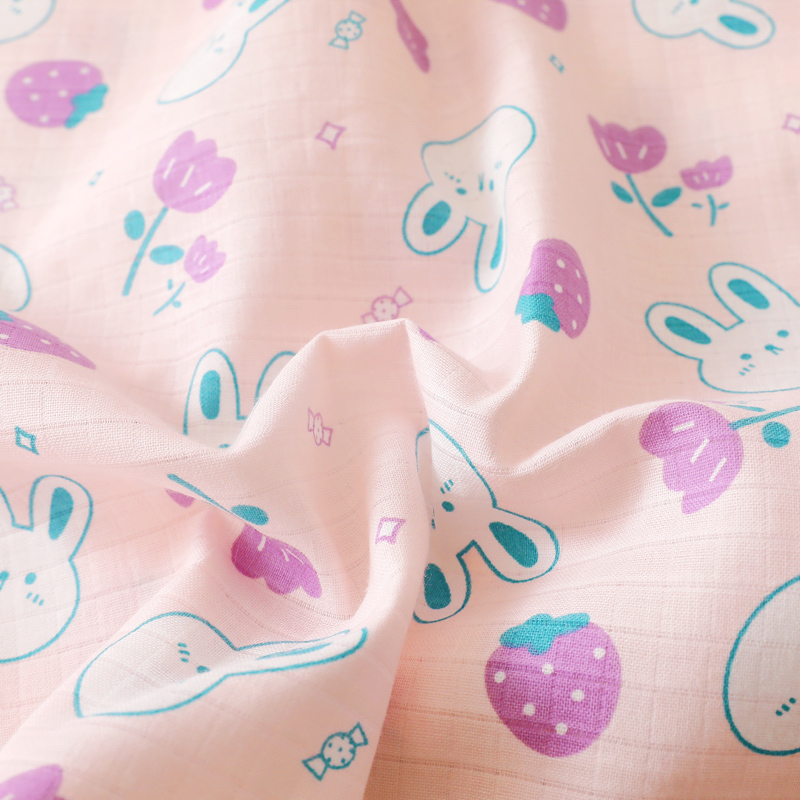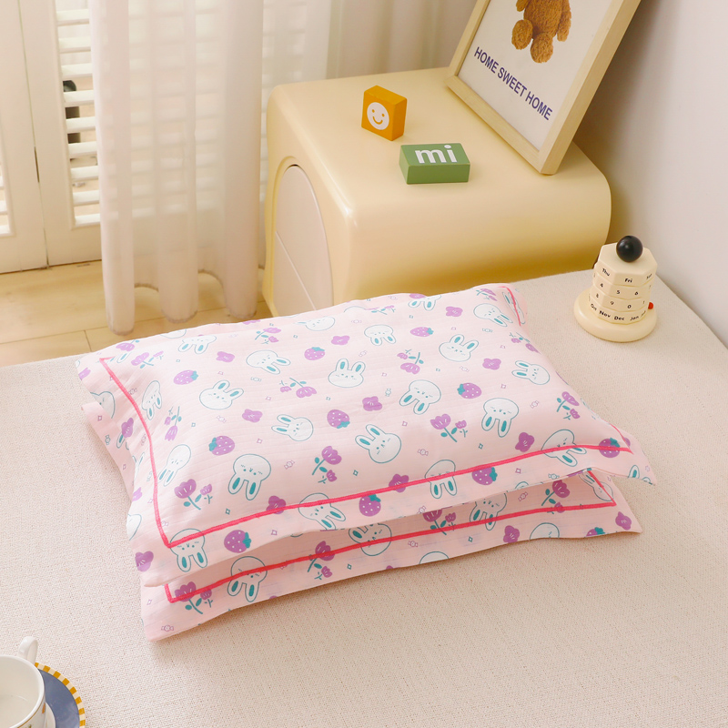 商品名称:乐秀家纺 2023新款A类双层纱卡通印花儿童幼儿园枕套 花园小兔