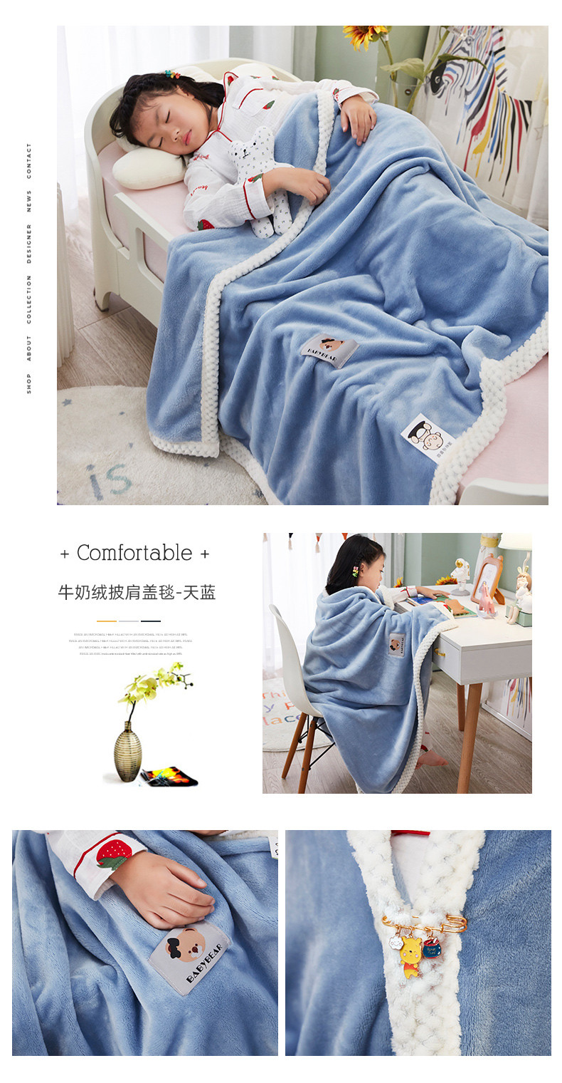 肖恩毯业 2025新款双面牛奶绒儿童披肩毯办公室午睡毛毯 天蓝