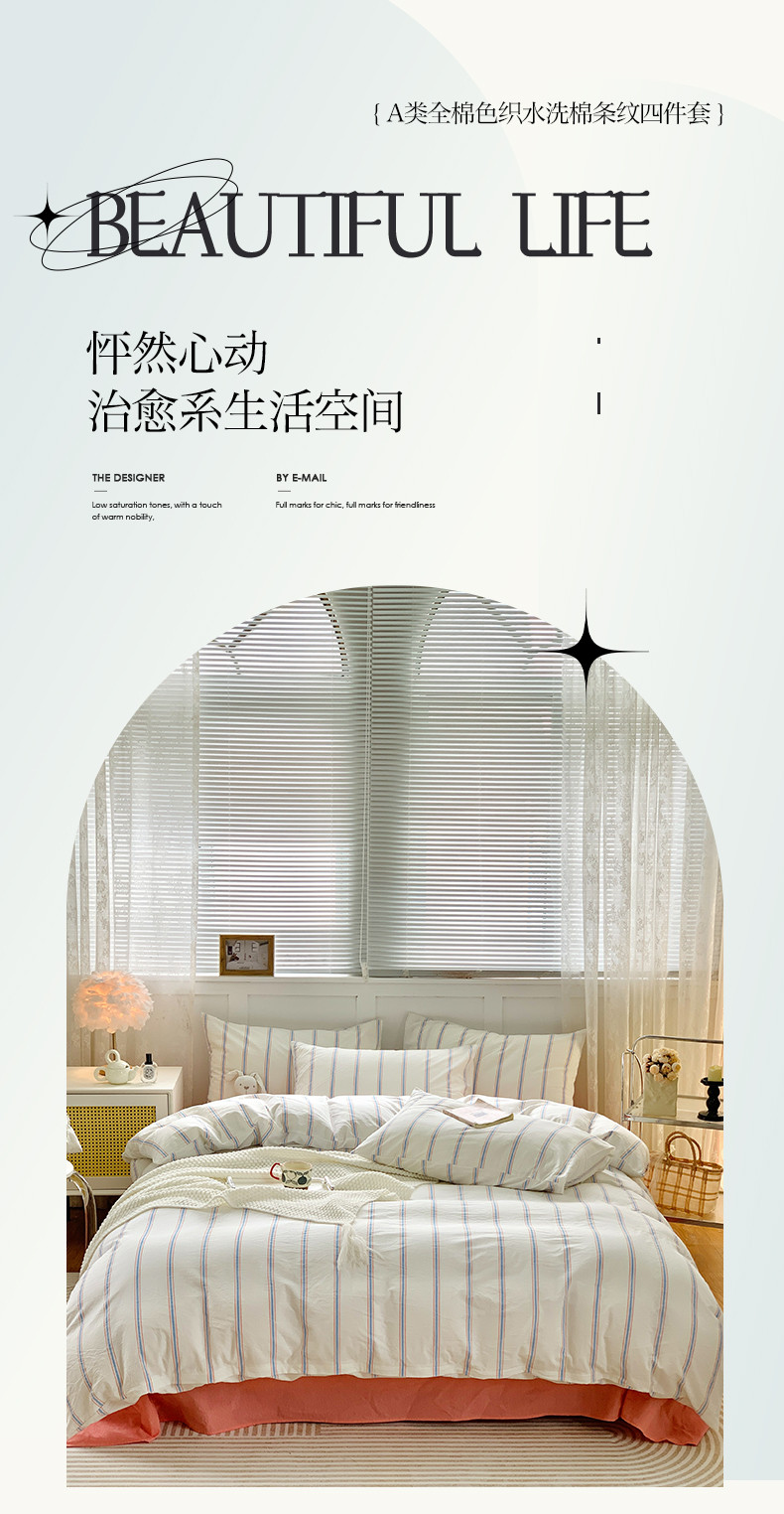 (总)莱茵家居 2025新款全棉纯棉皱皱纱条纹四件套-杼影,杼影-咖纸蓝,杼影-冷雾蓝,杼影-麦浪紫,杼影-绵云咖,杼影-奶泡粉,杼影-暖果黄,杼影-午茶绿,杼影-雨巷灰