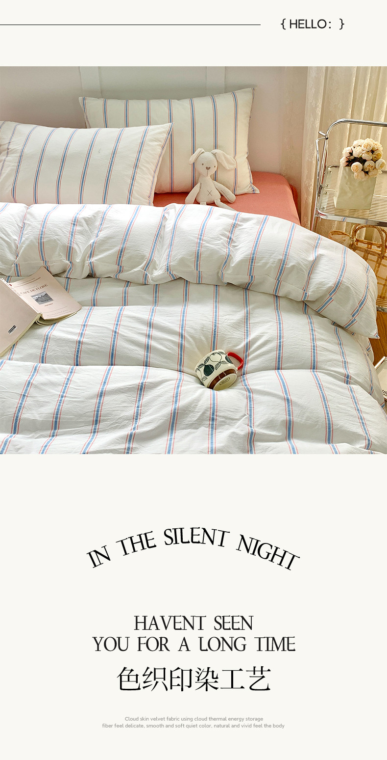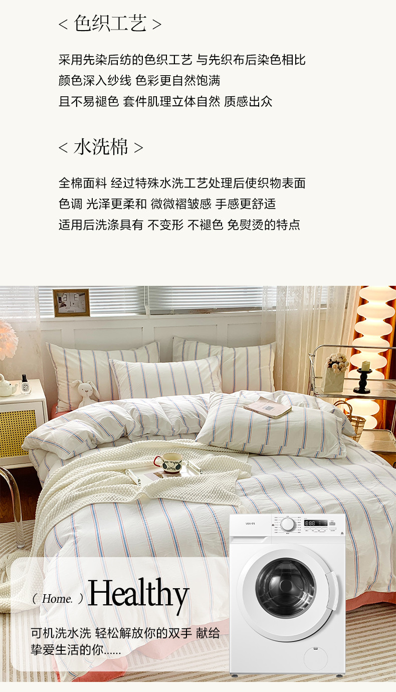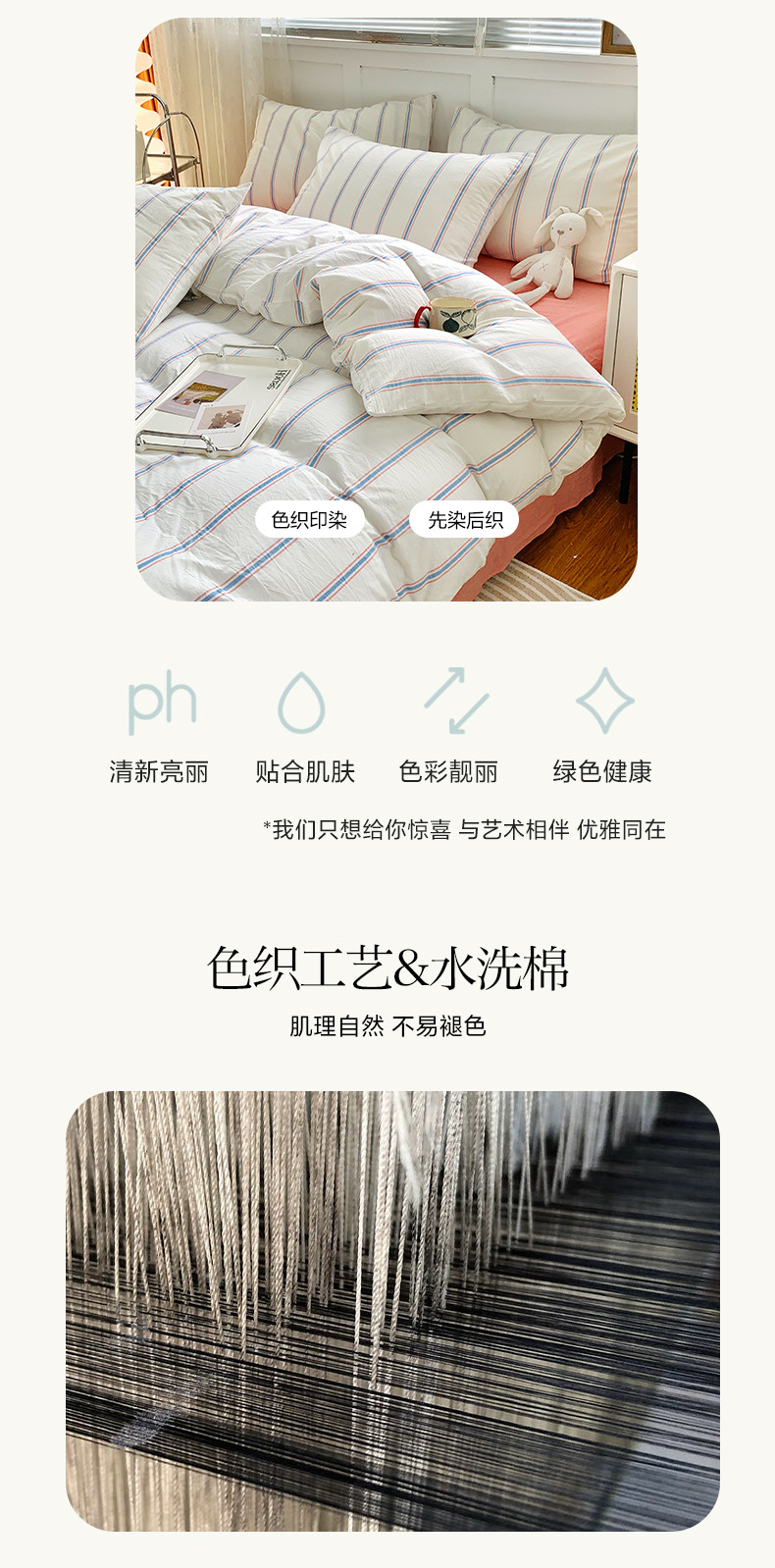 莱茵家居 2024新款色织水洗棉小小系列四件套 浅小蓝