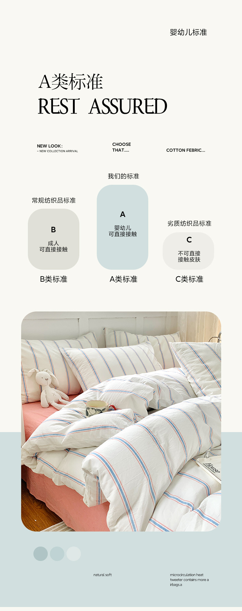 商品名称:莱茵家居 2024新款色织水洗棉小小系列四件套 浅小蓝