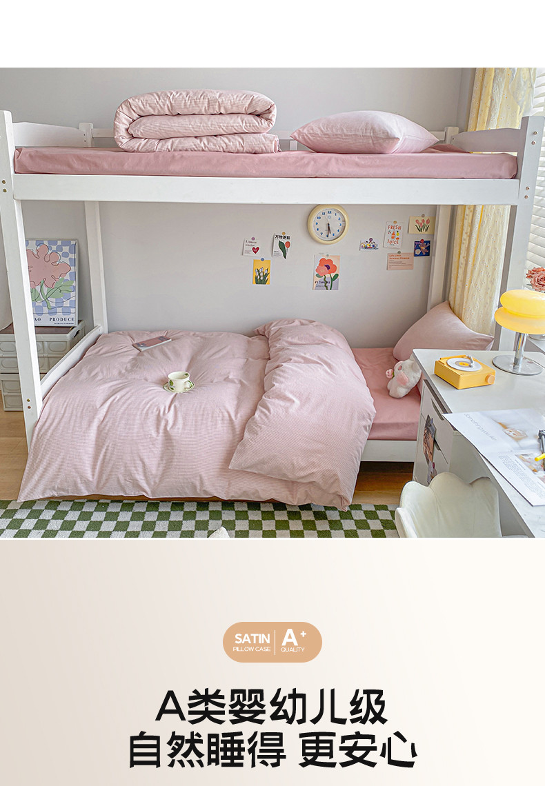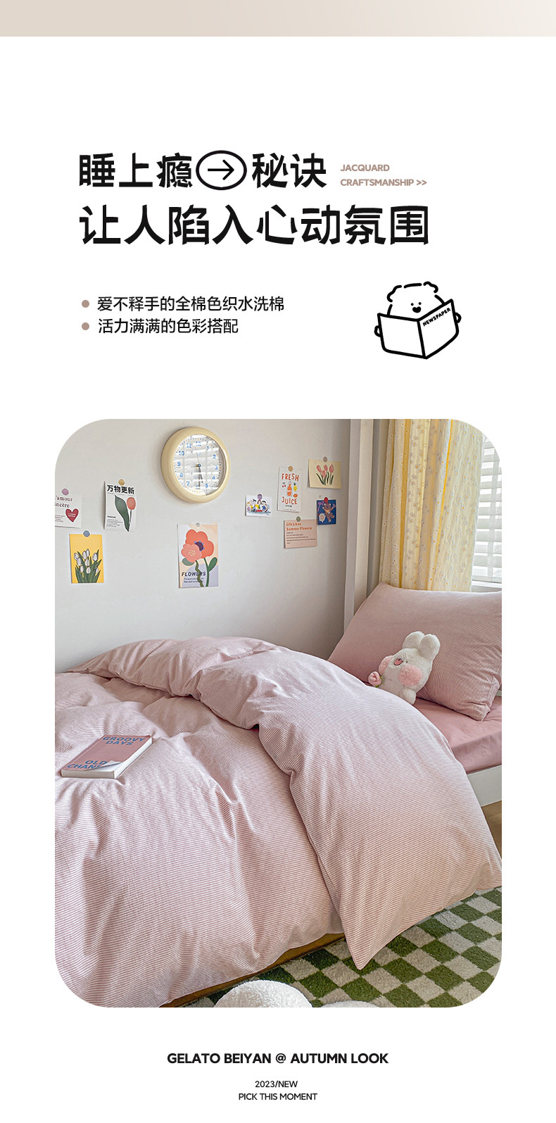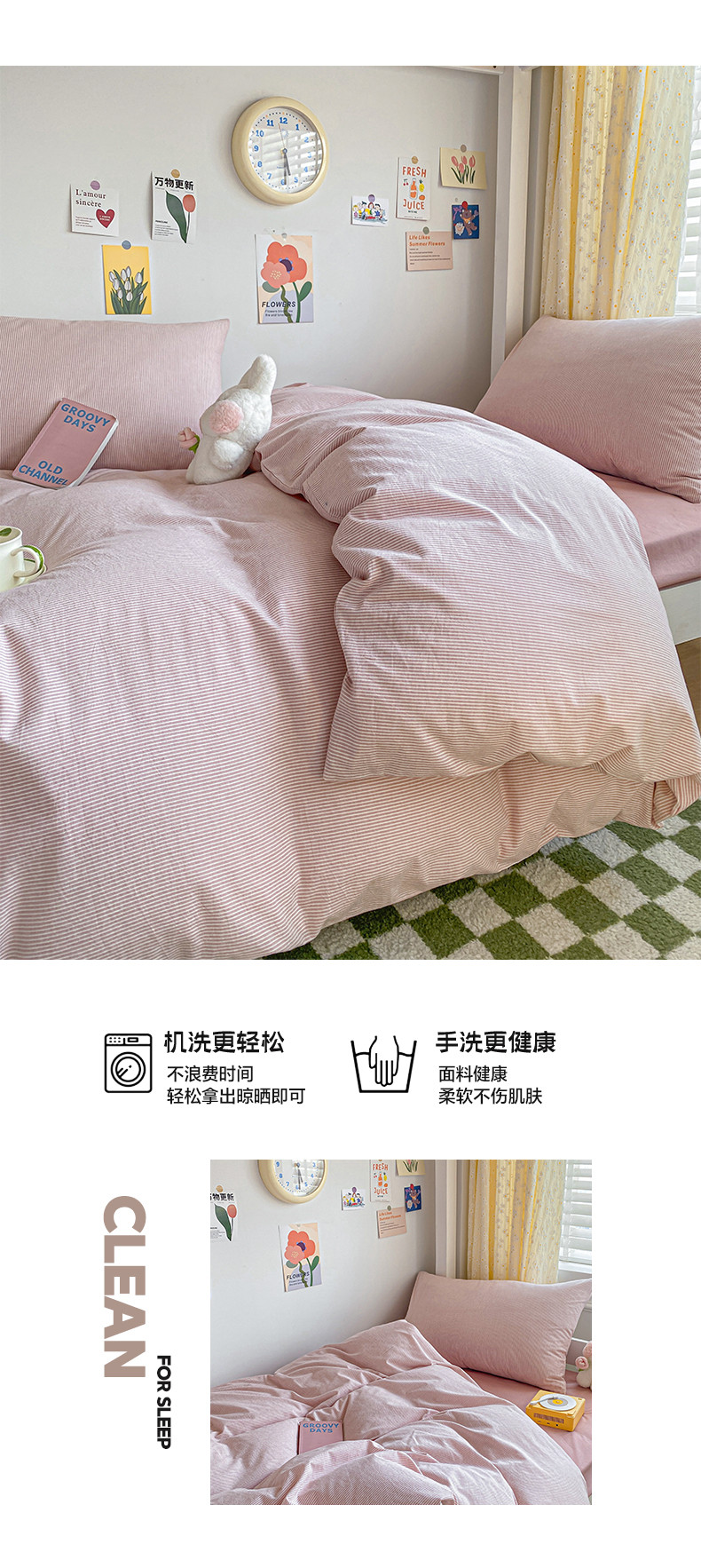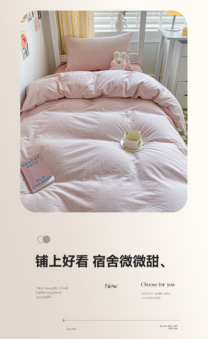 莱茵家居 2024新款色织全棉水洗棉学生床三件套 条小粉