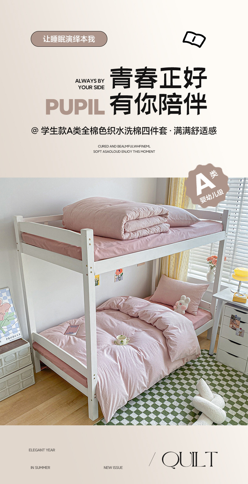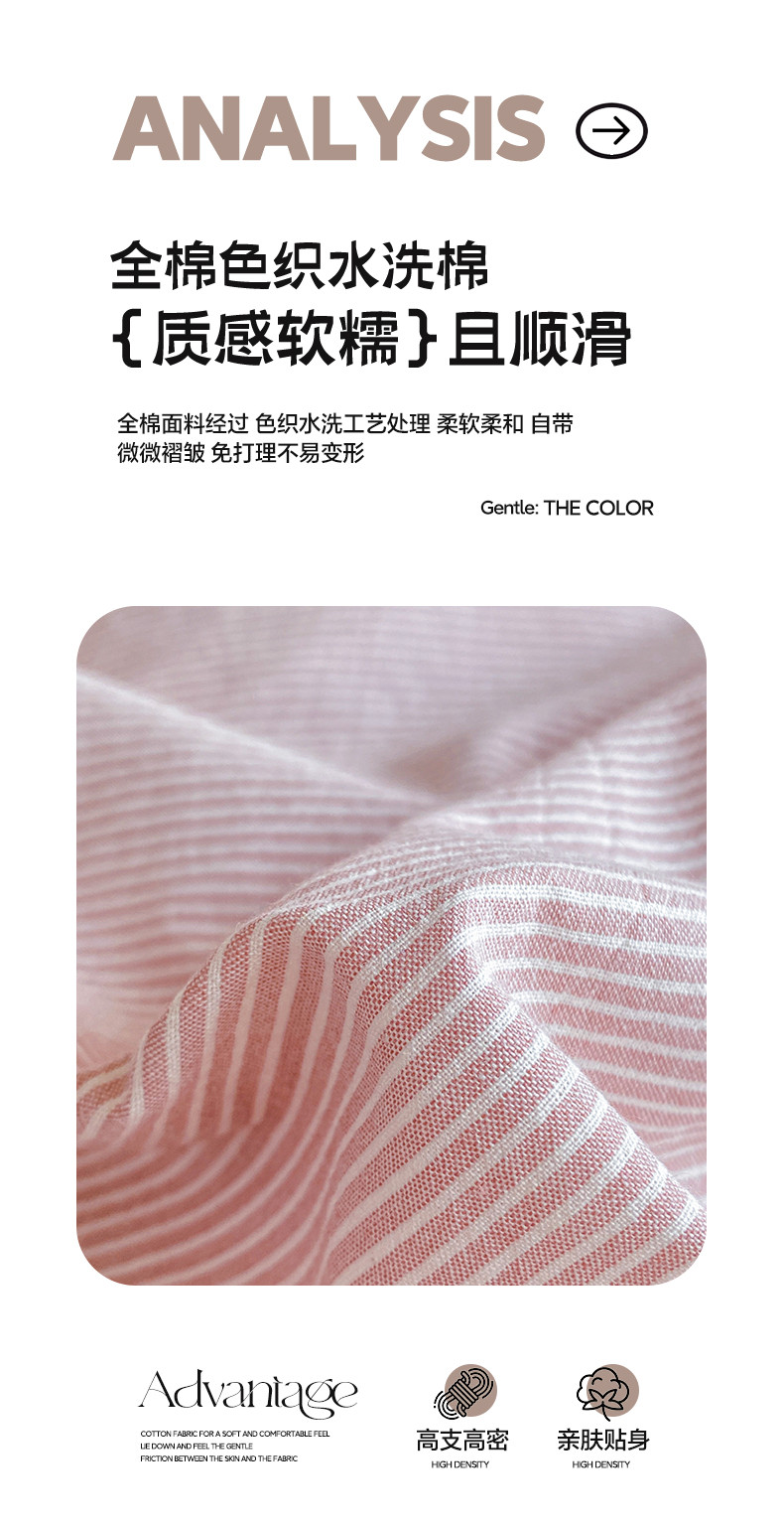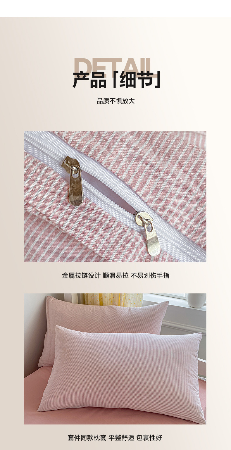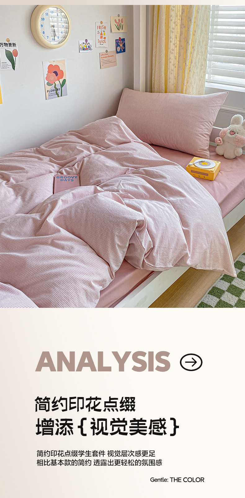 莱茵家居 2024新款色织全棉水洗棉学生床三件套 条小粉