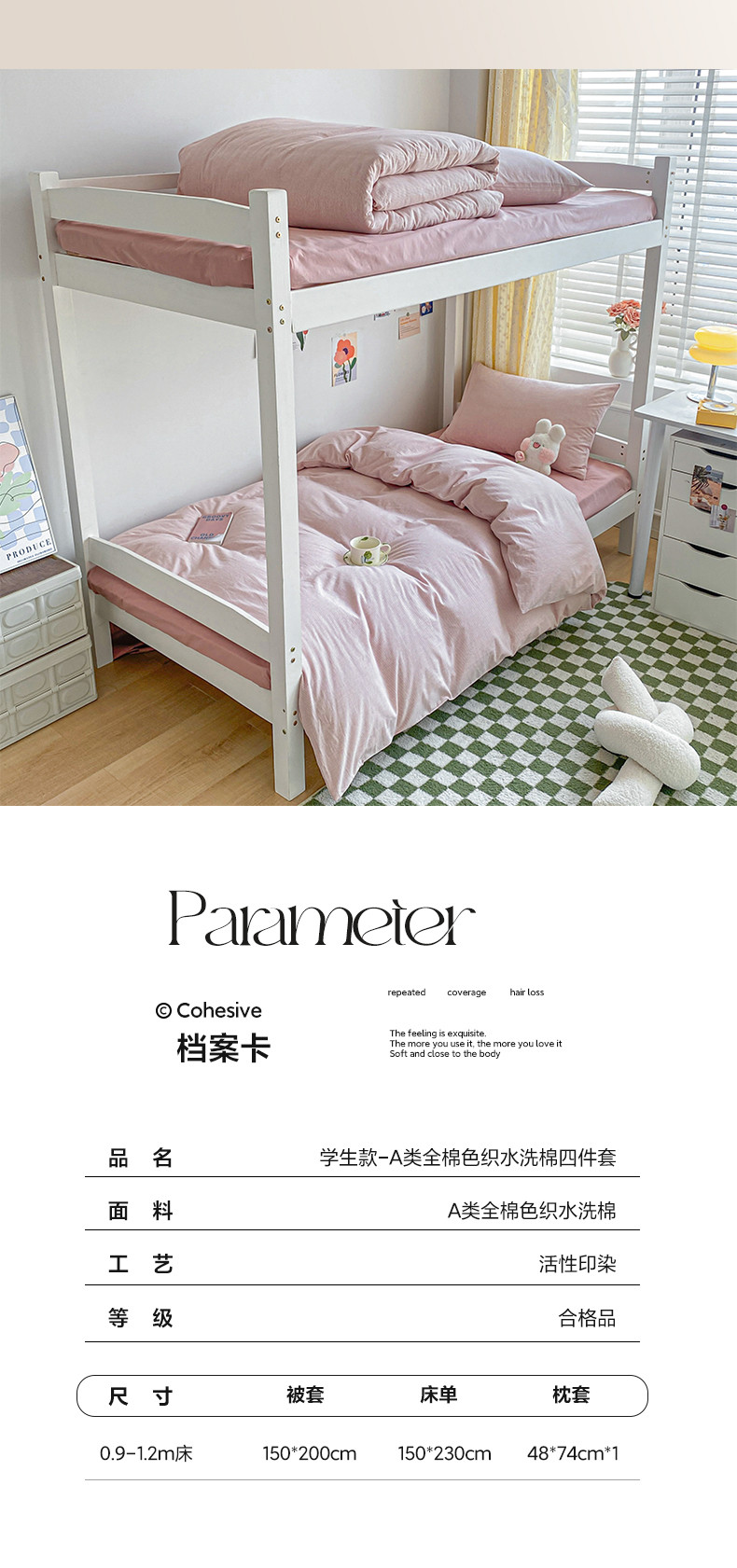 商品名称:莱茵家居 2024新款色织全棉水洗棉学生床三件套 条小粉